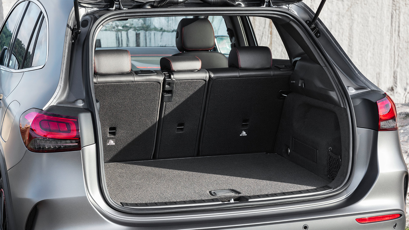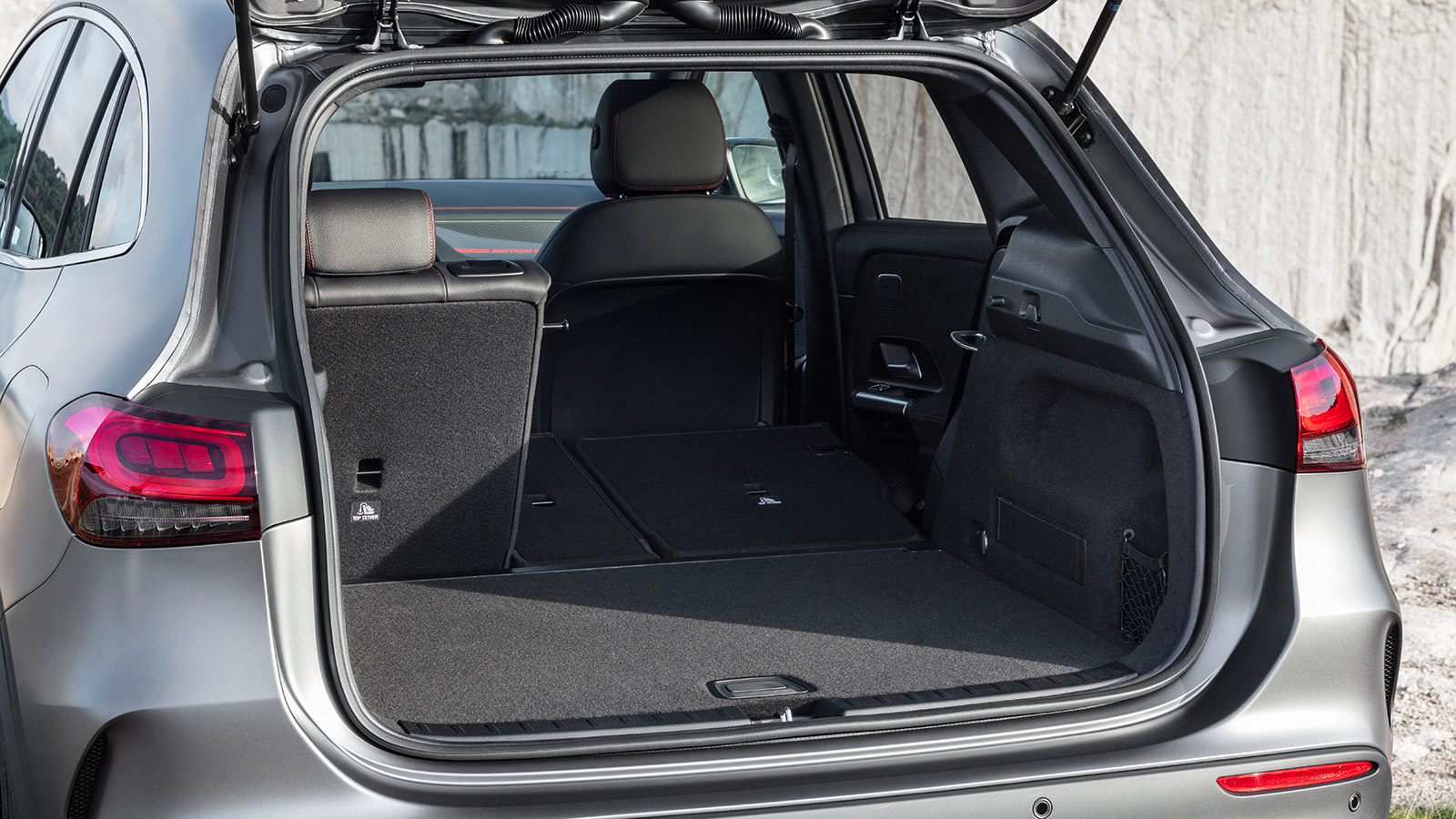 Es posible abatir los respaldos de la fila posterior, que están divididos en tres partes: 40/20/40. Con ellos tumbados, el volumen asciende a 1430 litros (1385 litros en el PHEV). El Audi Q3 y el BMW X1 siguen superando al Mercedes-Benz GLA en esta medición, con 1525 y 1600 litros respectivamente.