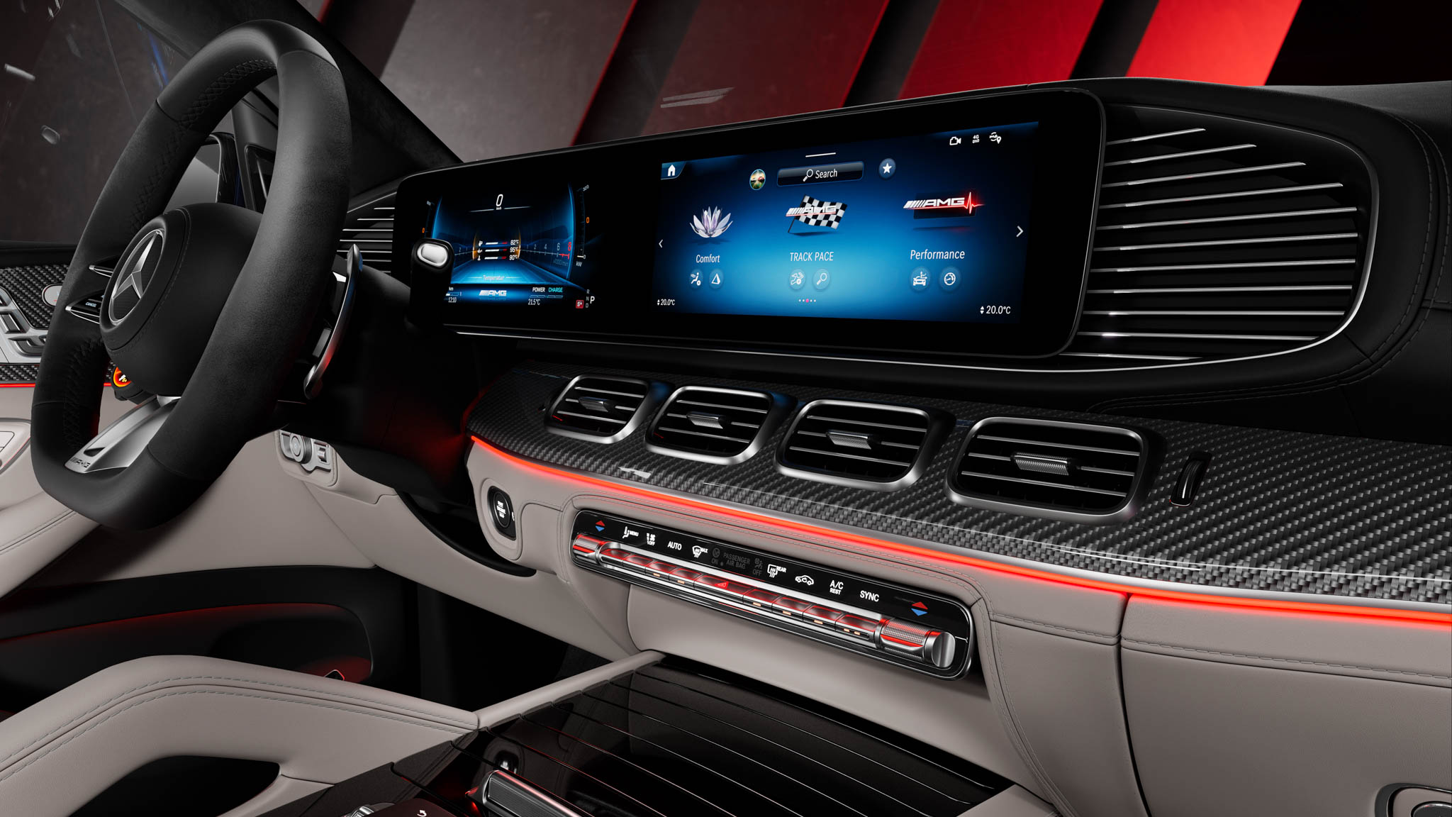 Con 12,3 pulgadas, las pantallas del cuadro de relojes y el sistema multimedia, son del mismo tamaño que en el GLE 2020.