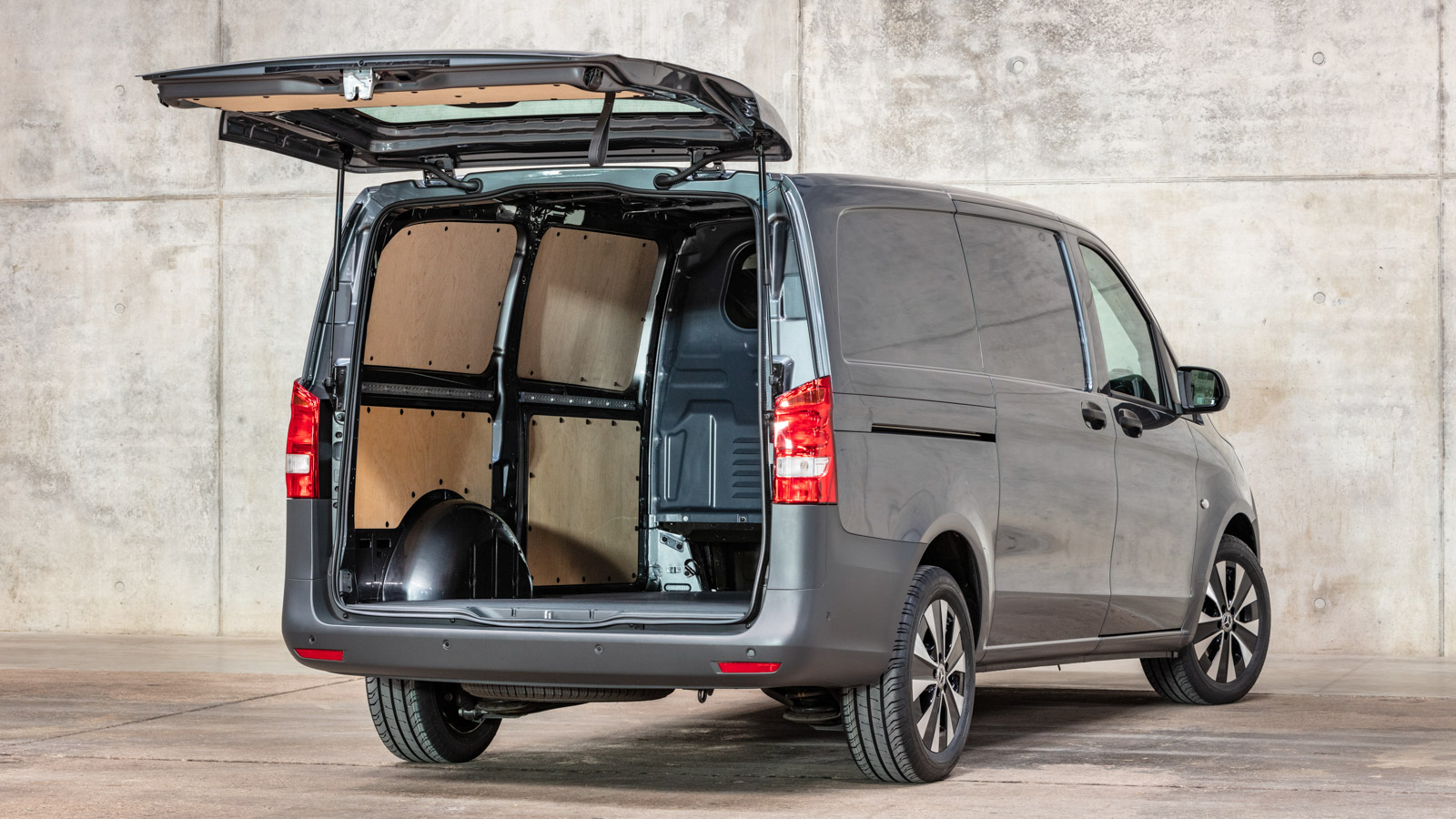 El Mercedes-Benz Vito Furgón está disponible con 3 medidas de carrocería de 4,9; 5,14 y 5,37 metros de longitud y un volumen de carga desde los 4 hasta los 6,6 metros cúbicos.