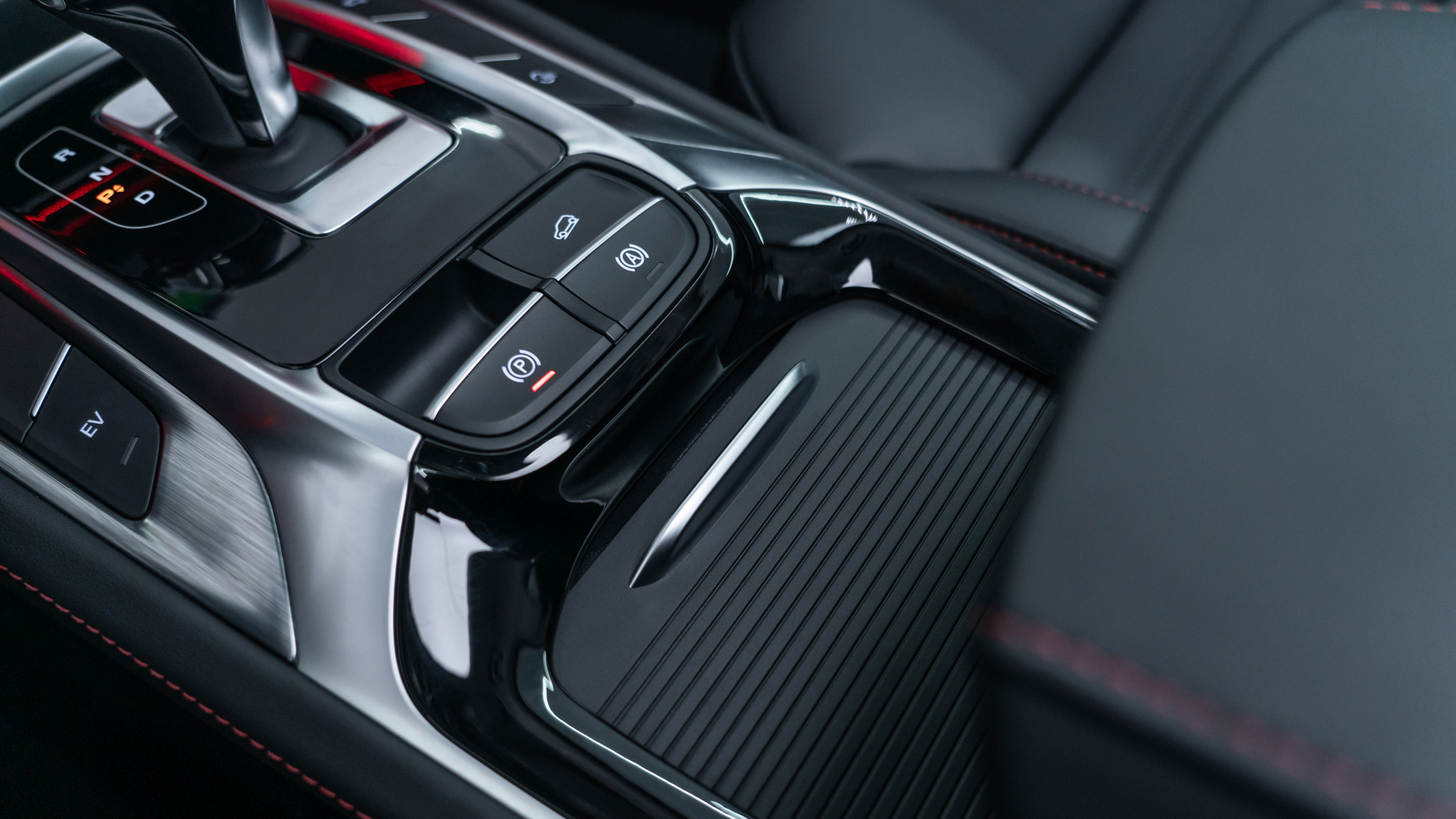La transmisión es automática de diez velocidades, de las cuales seis son para el motor de gasolina y cuatro son para el motor eléctrico. El MG EHS solo puede tener tracción delantera y su altura libre al suelo no es grande, de solo 14,5 centímetros, por lo que no es un SUV indicado para salir del asfalto.