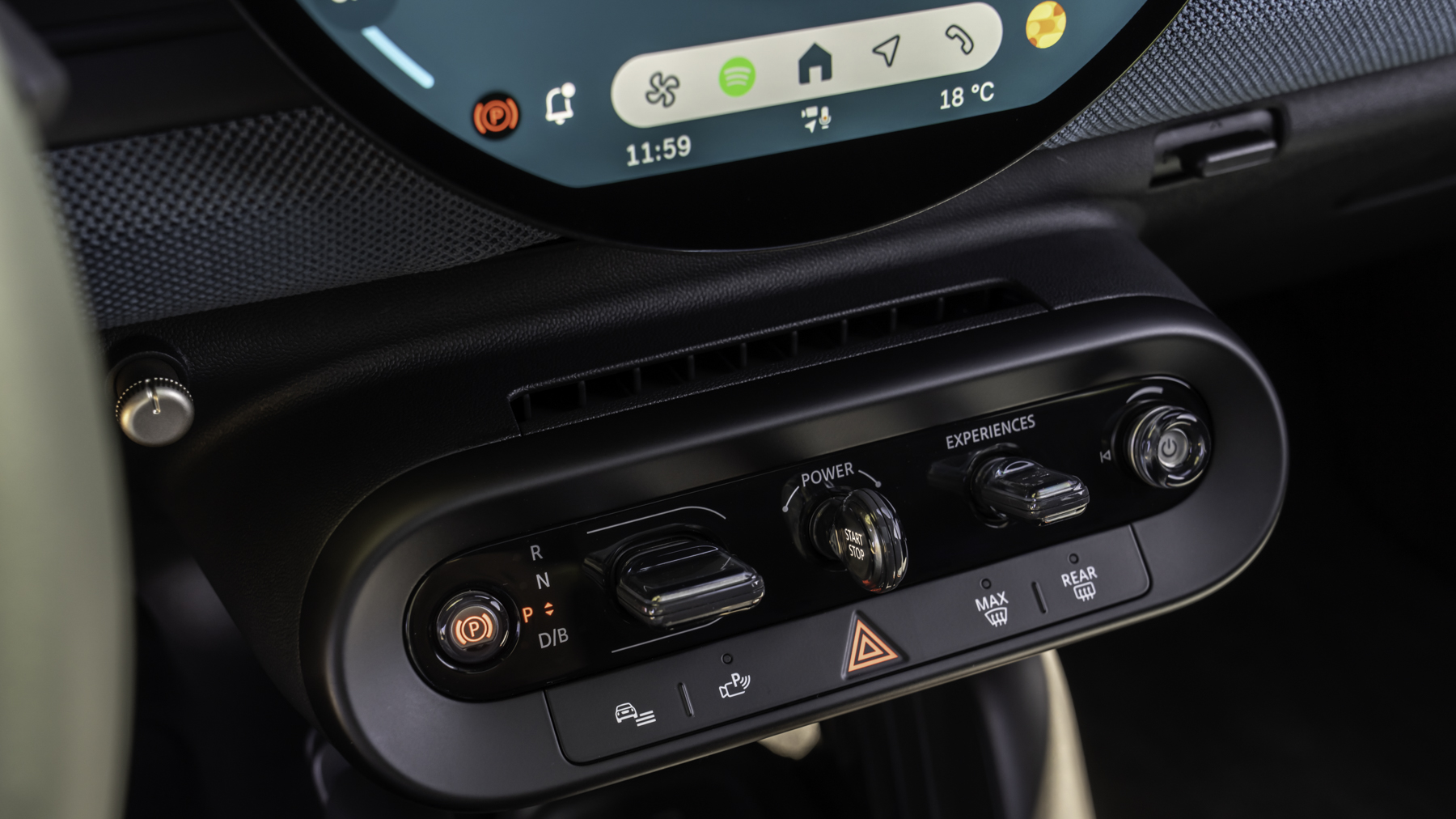 MINI ha rediseñado los mandos de tipo conmutador del salpicadero, que cuenta con palancas individuales para las principales funciones de conducción, como el freno de estacionamiento, el selector de marchas, la llave de arranque/parada, el cambio de modo de conducción y el control de volumen.