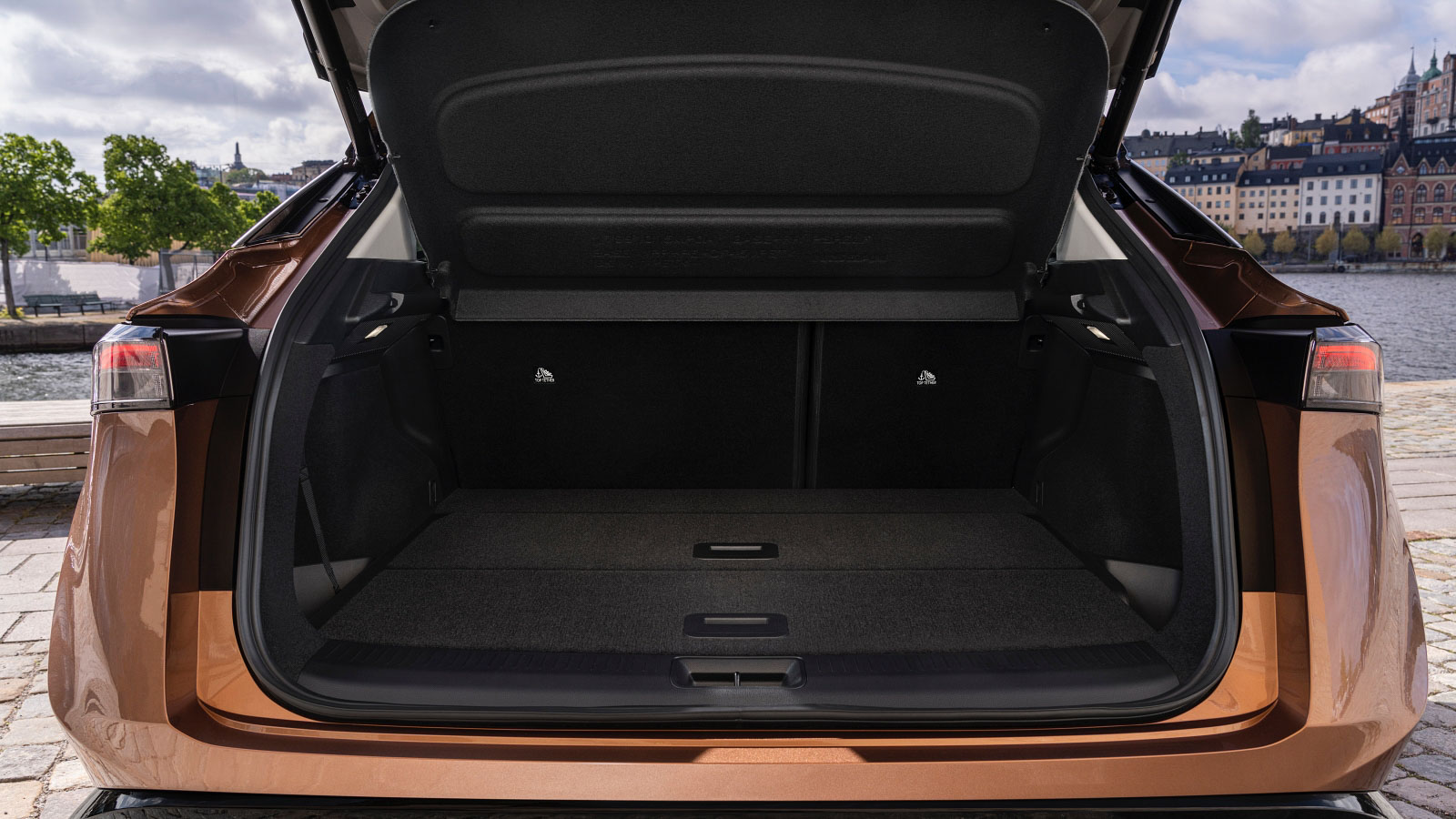 El Ariya ofrece una conducción suave y eficiente, con una autonomía que varía según la versión. La variante con batería de 63 kWh y tracción delantera tiene una autonomía aproximada de 300 km en autovía, mientras que las versiones de tracción total ofrecen menos espacio en el maletero, pasando de 468 litros a 415 litros. Admite carga a potencia de hasta 130 kW, nada excepcional aunque le permite cargar el 80% de la batería en aproximadamente 30 minutos.