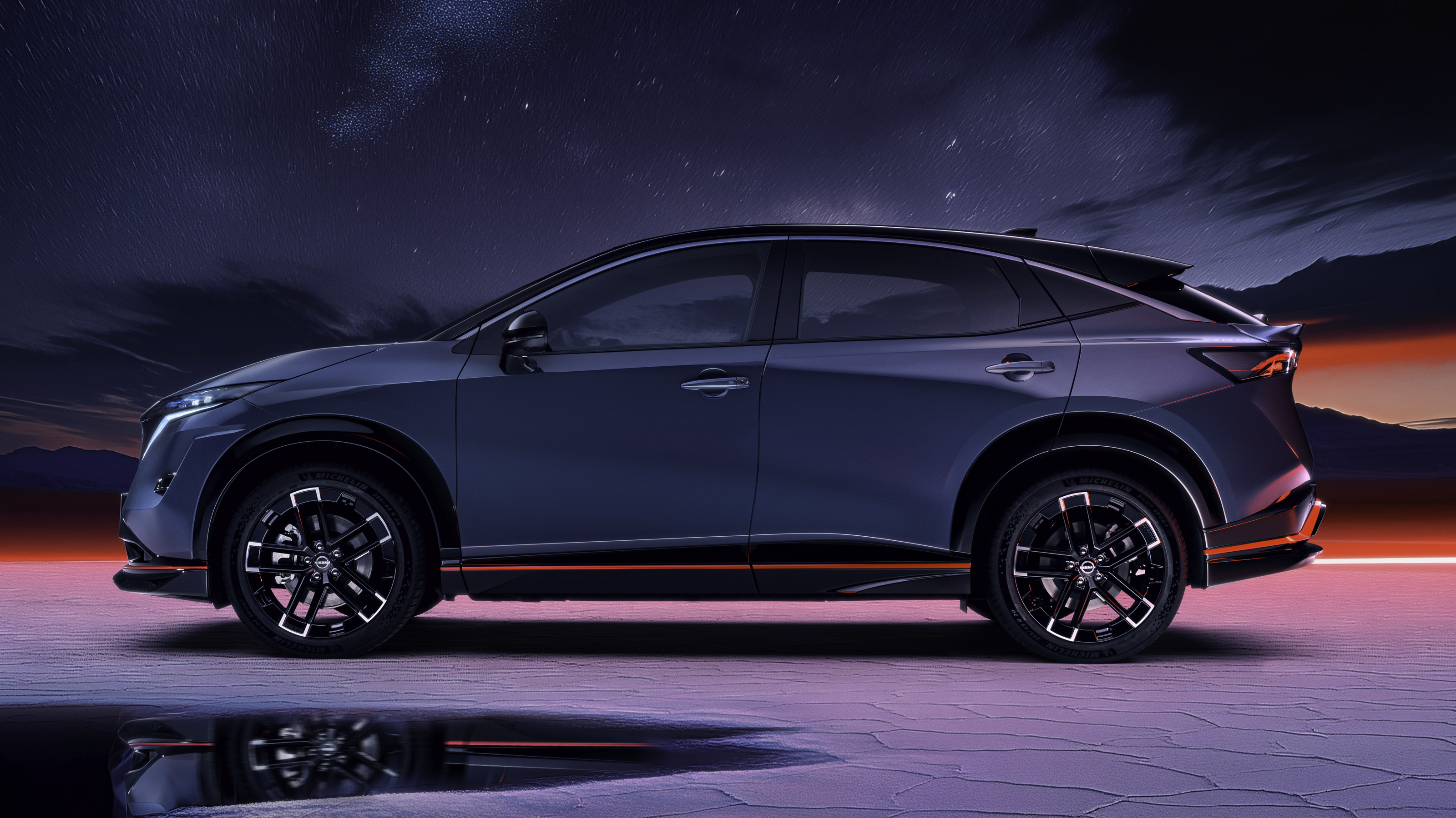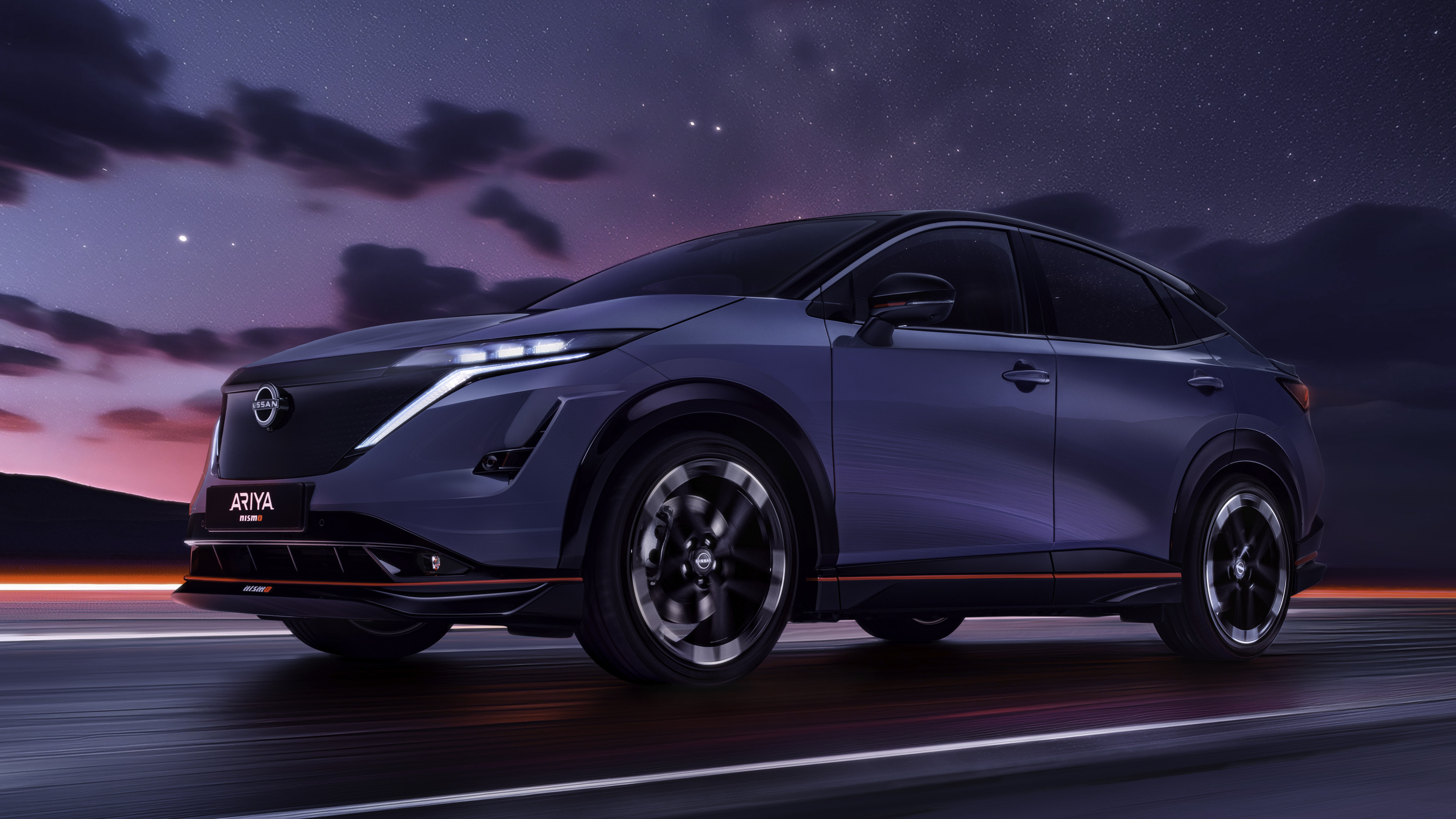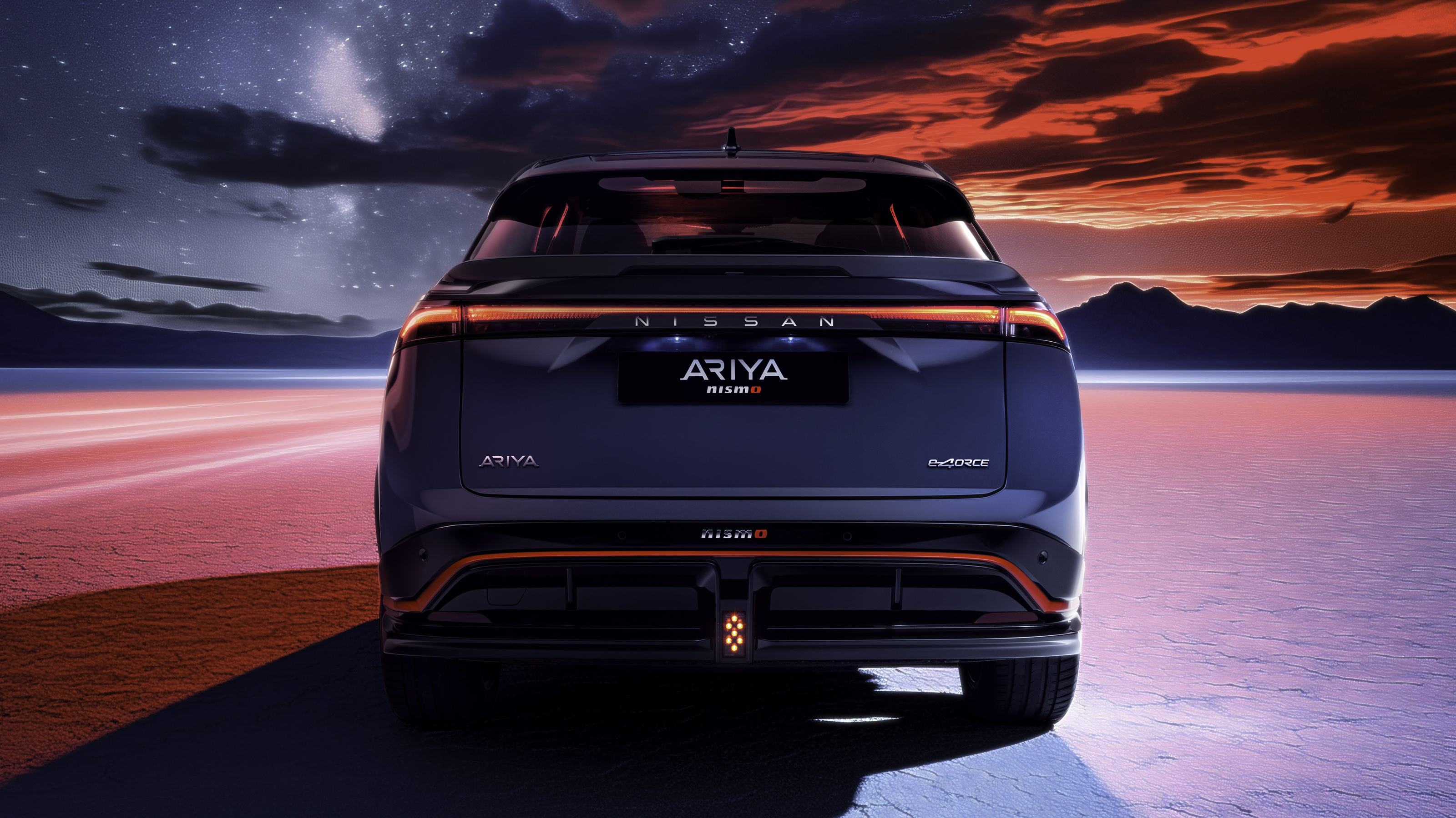 El Nissan Ariya NISMO es la versión más deportiva del SUV eléctrico de Nissan. Va pintado en color NISMO Grey con detalles en rojo. Cuenta con el sistema de tracción e-4ORCE y una batería de 87 kWh, y pasa de 0 a 100 km/h en 5 segundos. Tiene una suspensión más firme y enérgica. En el interior, el Ariya NISMO combina asientos con tapicería exclusiva y la iluminación roja ANDON, que crea una atmósfera más deportiva.
