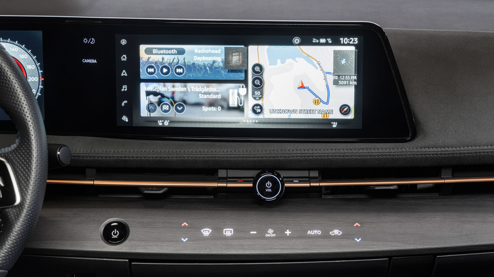 De serie en el Ariya encontrarás un cuadro de relojes digital y una pantalla multimedia en el salpicadero además en la versión más equipada encontrarás girar display que proyecta información en el parabrisas.