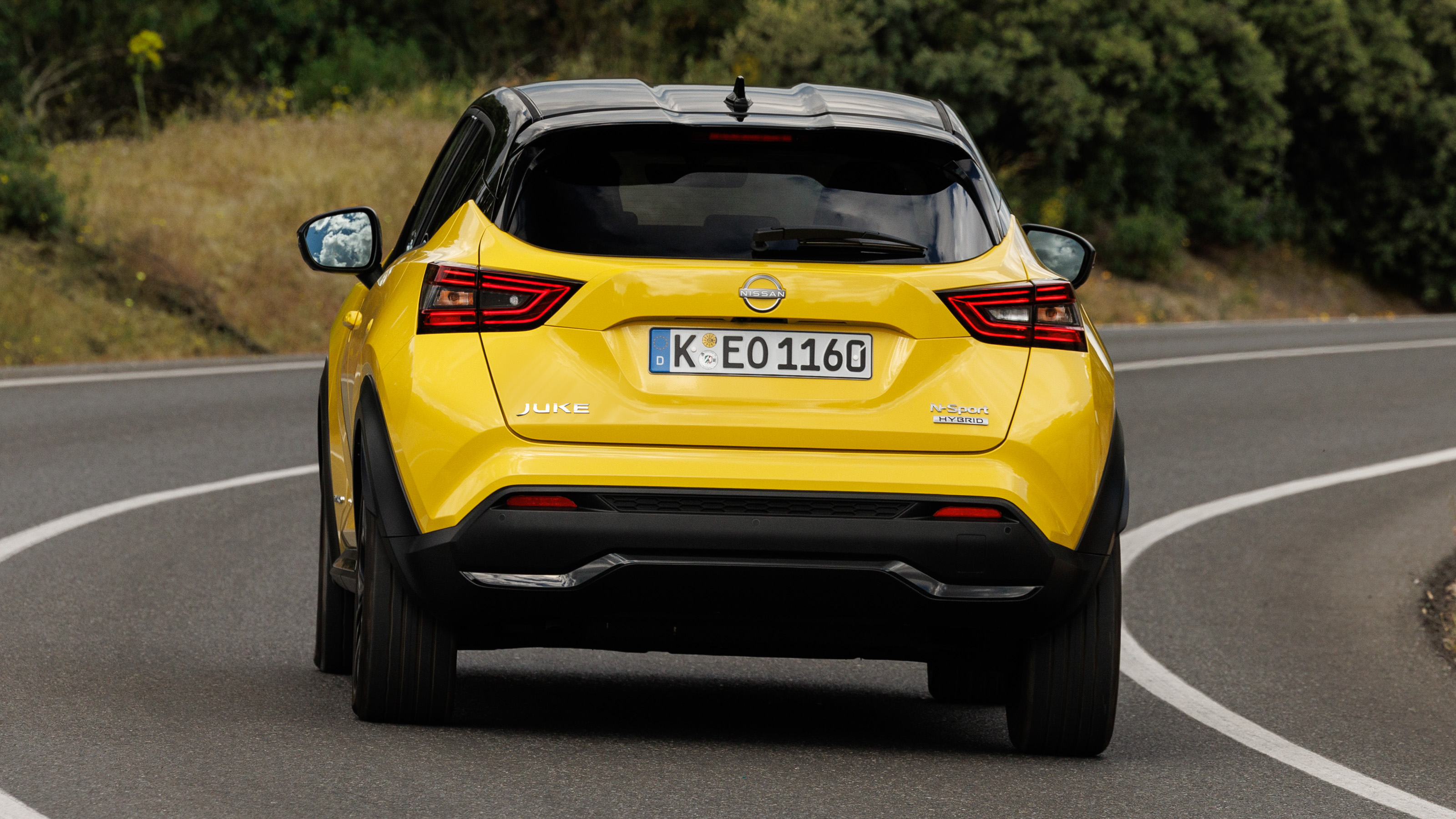 En junio de 2022 se introduce en la gama mecánica del Juke un sistema híbrido no enchufable que obtiene la etiqueta ECO de la DGT. Está compuesto por un motor gasolina de cuatro cilindros atmosférico de 95 CV y dos eléctricos de 49 y 20 CV cada uno. La potencia total combinada es de 145 CV con un par de 205 Nm, el vehículo puede circular en modo 100% eléctrico hasta los 55 Km/h y la tracción es siempre a las ruedas delanteras.