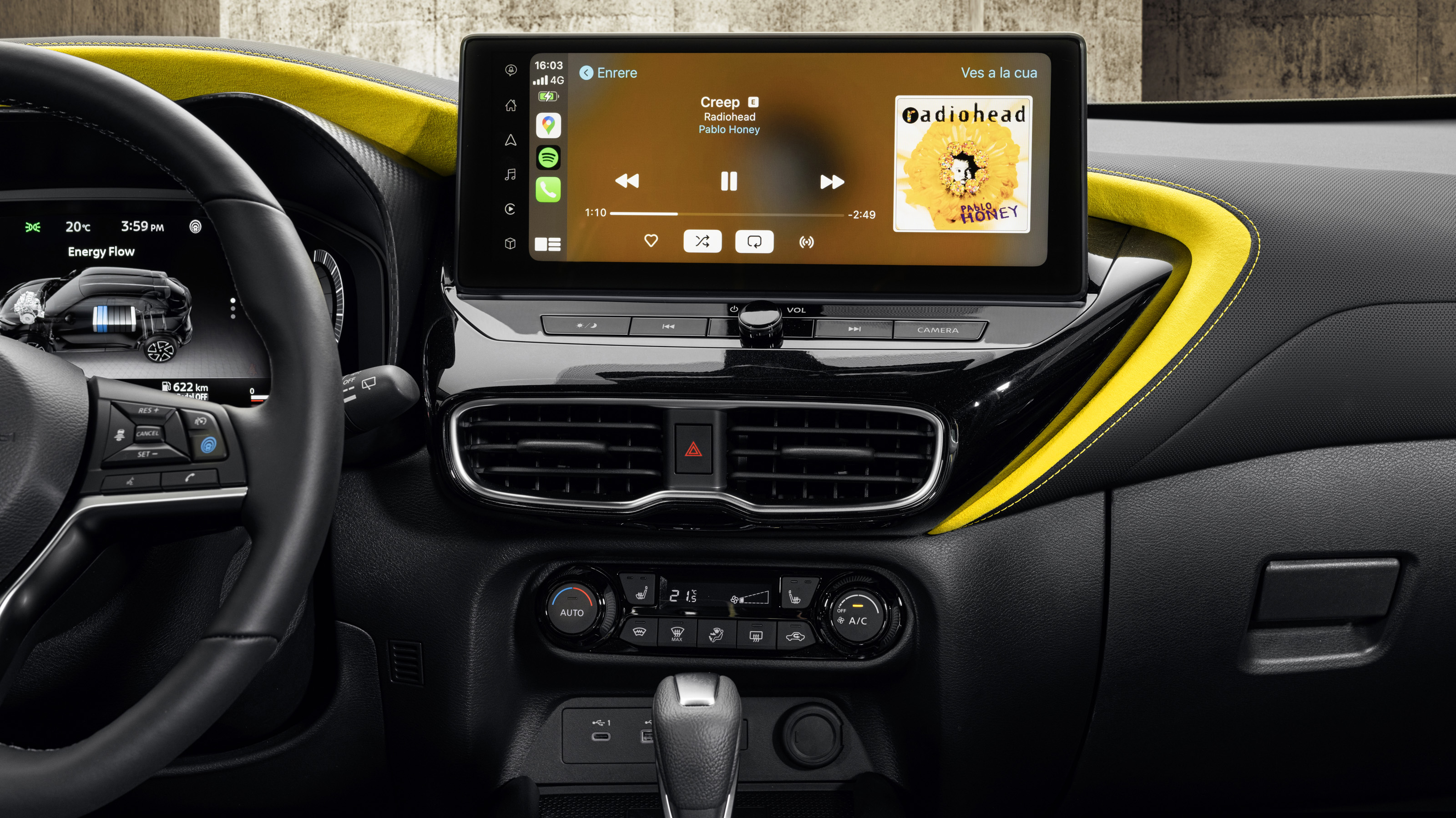 Aquí es donde el Juke 2024 da el mayor salto. La pantalla central crece hasta 12,3 pulgadas, está ligeramente orientada hacia el conductor y por fin ofrece una interfaz rápida, clara y fácil de manejar. La conectividad inalámbrica con Android Auto y Apple CarPlay funciona sin complicaciones y el sistema permite un nivel de personalización alto, casi como si configuraras la pantalla de un móvil, con widgets y accesos directos.