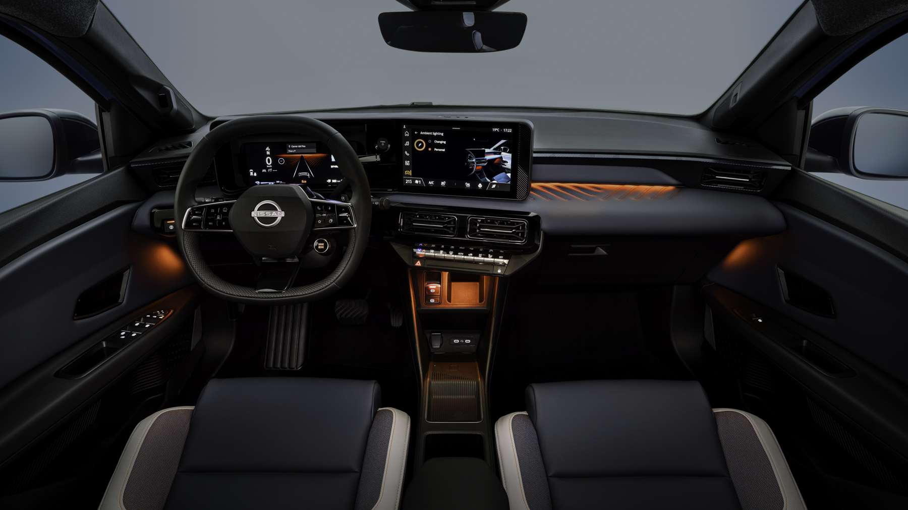 En el habitáculo, el Nissan Micra dispone de dos pantallas digitales de alta resolución de 10,1 pulgadas cada una. Una de ellas, situada detrás del volante, ofrece información para el conductor; la otra, central, permite controlar funciones de navegación, audio y teléfono. Ambas pantallas están integradas dentro del sistema NissanConnect, que cuenta con Google integrado de serie.