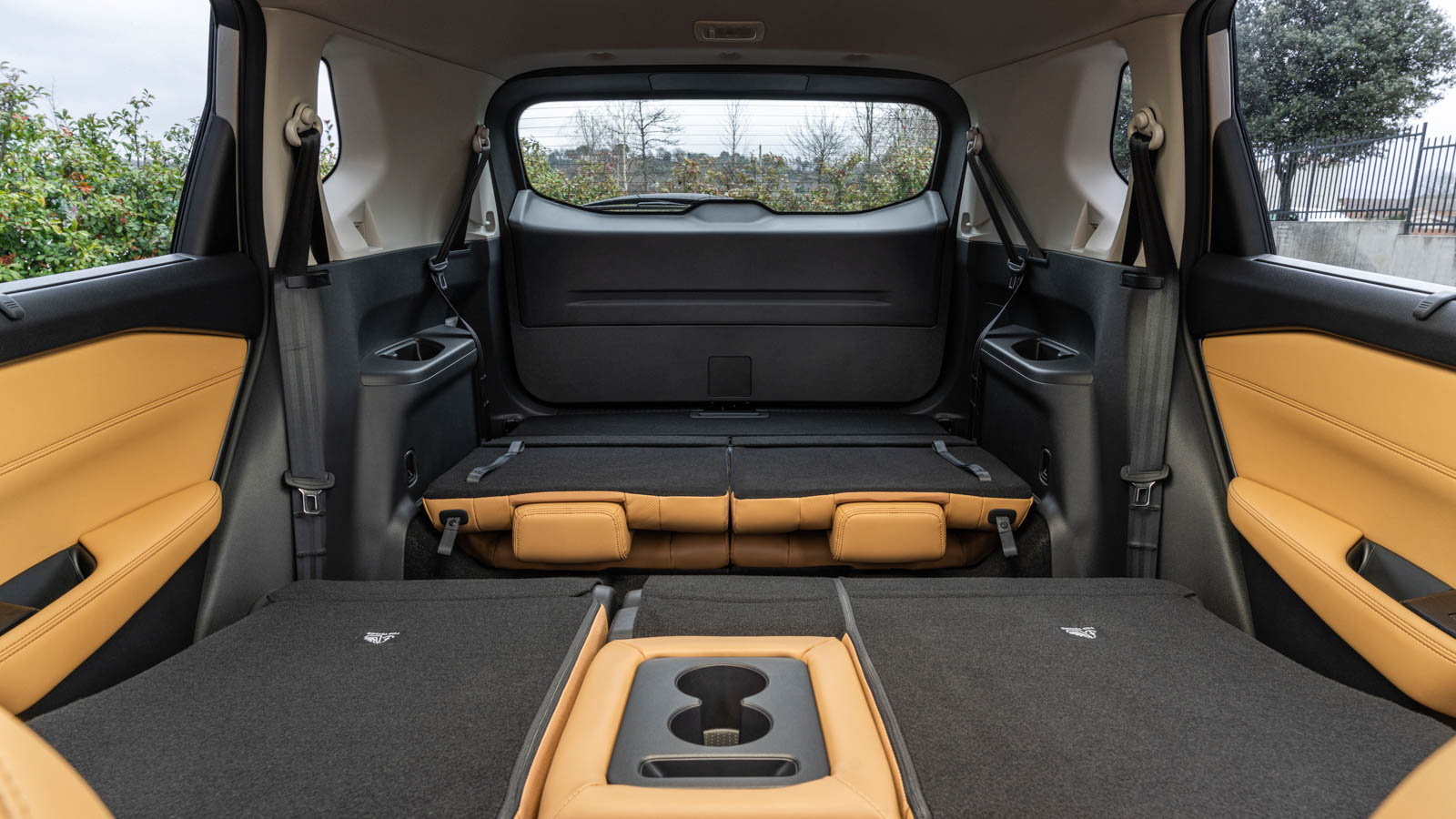 El resumen del maletero es que te resultará suficiente para viajar y para un uso familiar, pero no es especialmente capaz. O te podemos decir que “no destaca” frente a sus rivales por su capacidad. Es muy posible que, cuando abras por primera vez el portón del maletero, de manera eléctrica, por cierto, veas un buen maletero; lo cual no es que te engañe la vista, lo único que si te decimos que su profundidad no es la mejor porque solo tiene 84 cm. Por ejemplo, un Kia Sorento tiene 104 cm de profundidad o, simplemente, un Peugeot 5008, ya llega a 100.