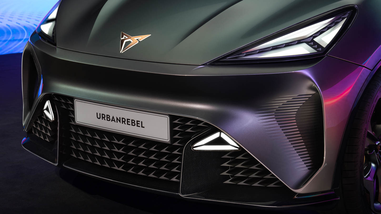 CUPRA dice que en el diseño del coche se ha inspirado en elementos del mundo de la competición, como por ejemplo en la visera y la parte superior de un casco, en referencia al alerón y los aletines del techo del UrbanRebel. Las llantas sonde 21 pulgadas, aunque la plataforma sólo admite llantas de hasta 20 pulgadas, que será el tamaño máximo disponible en el coche que derive.