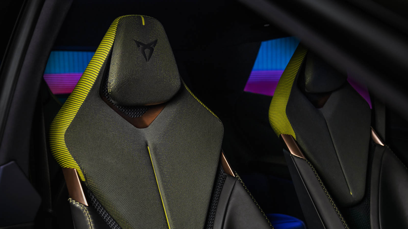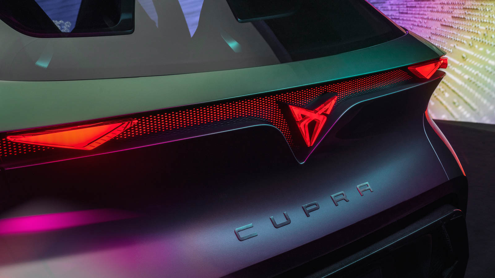 Uno de los detalles que CUPRA remarca en relación al diseño del coche es lo que denomina “firma lumínica”, que es del estilo que empleará en los faros y pilotos de futuros modelos como el CUPRA Tavascan. Algunos detalles de la carrocería son piezas de fibra de carbono, como el difusor posterior, que llegará al modelo definitivo aunque con un aspecto más discreto y un plano adicional en su parte baja, para ayudar a reducir la resistencia al viento (reduce las turbulencias en la parte trasera del coche, lo que hace que “se frene” menos).