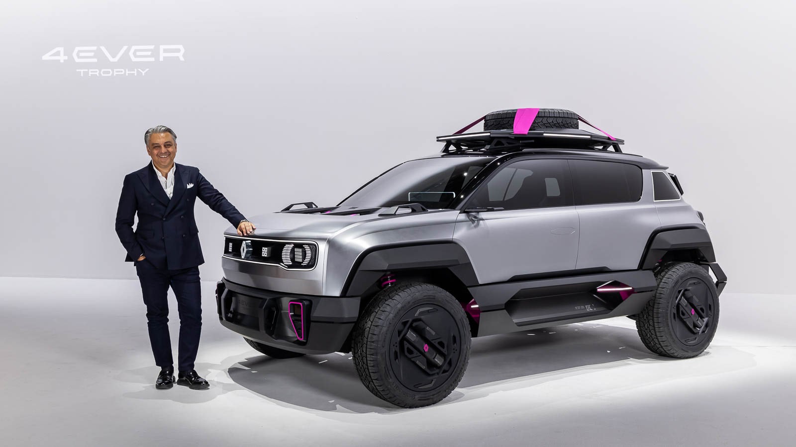 El 4EVER Trophy es un adelanto del segundo modelo que Renault resucitará, tras el Renault 5 Prototype presentado hace casi dos años. De este prototipo saldrá un SUV pequeño (segmento B), eléctrico y relativamente “asequible” (en palabras de su diseñador, Gilles Vidal), del que se pueden atisbar las líneas principales ya que, tras todo ese maquillaje de aventuras, se esconde prácticamente la carrocería real del futuro modelo de producción. Estará desarrollado sobre la plataforma para coches eléctricos pequeños CMF-BEV, común al grupo para otros modelos de tamaño similar.