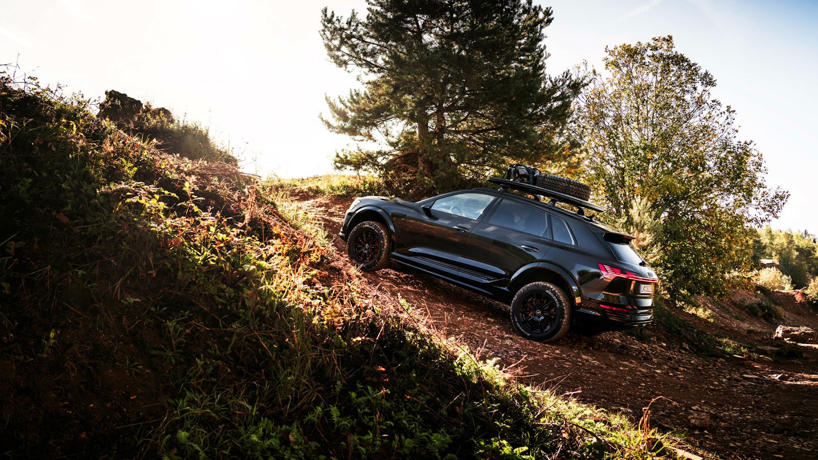 Además, las modificaciones permiten ángulos de ataque y salida de 20 grados, ideales para superar obstáculos en terrenos difíciles. A nivel mecánico, se mantiene la base del Audi Q8 55 e-tron quattro con 408 CV y tracción total, pero con las vías ensanchadas en 39 mm, similar al SQ8 e-tron.