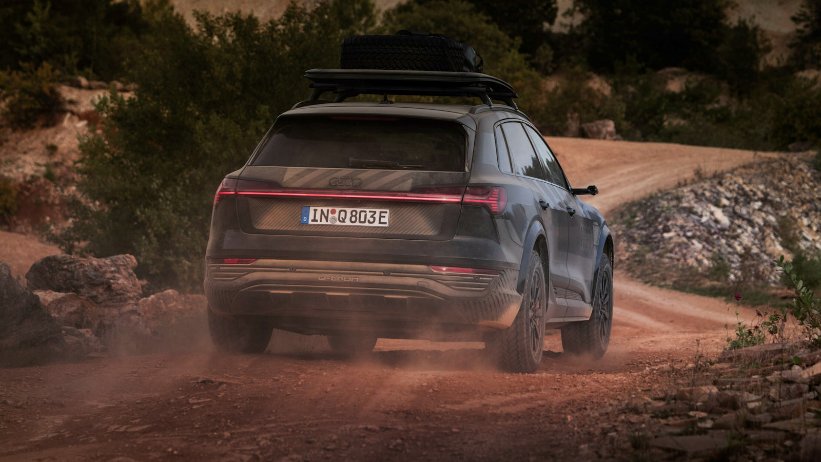 Además de mejorar sus cualidades todoterreno, su diseño pensado en el Dakar también se hace notar. Equipado con un paquete estético opcional inspirado en el RS Q e-tron, esta edición está disponible en negro Mythos con un acabado parcialmente transparente en algunas áreas de la carrocería. Los clientes también tienen opciones de color adicionales y pueden incluir una barra de luces en la parrilla y una baca de techo estándar, capaz de soportar hasta 40 kg.