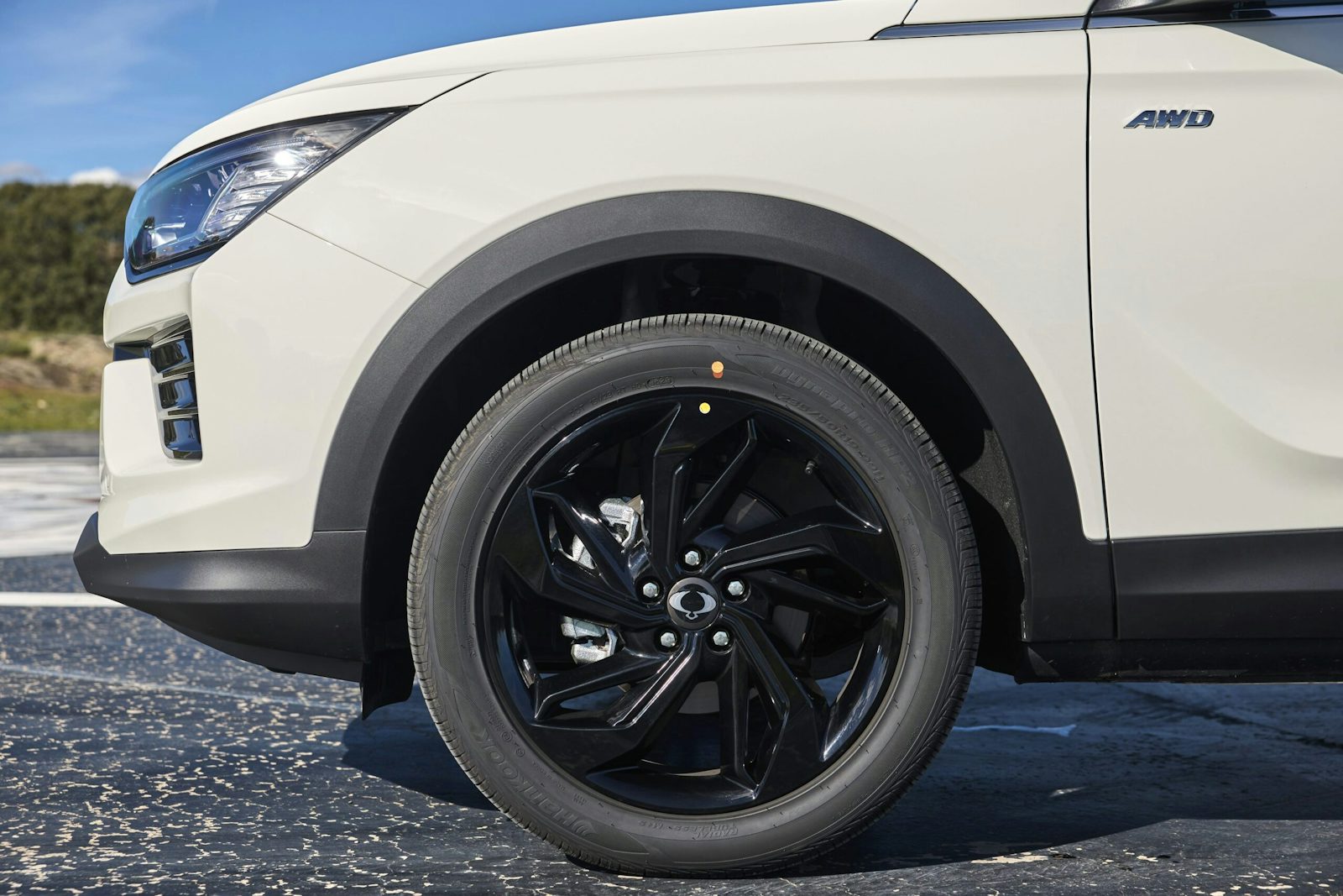 Con el Paquete Black Pack, el Korando destaca por una parrilla y una línea de faros en color negro. Además, tanto el enganche del remolque como las letras del nombre del modelo están en rojo, dándole un toque elegante.