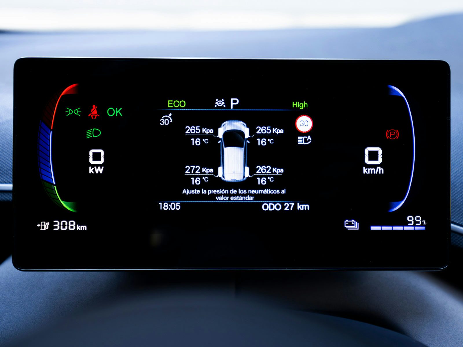 Por encima, la Comfort combina esta batería grande con un motor más potente de 156 CV (115 kW) y 220 Nm de par, logrando 0 a 100 km/h en 9,1 segundos y hasta 460 km de autonomía urbana. La velocidad máxima está limitada a 150 km/h en todas las versiones.