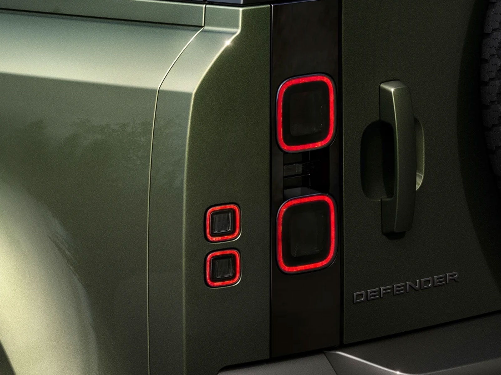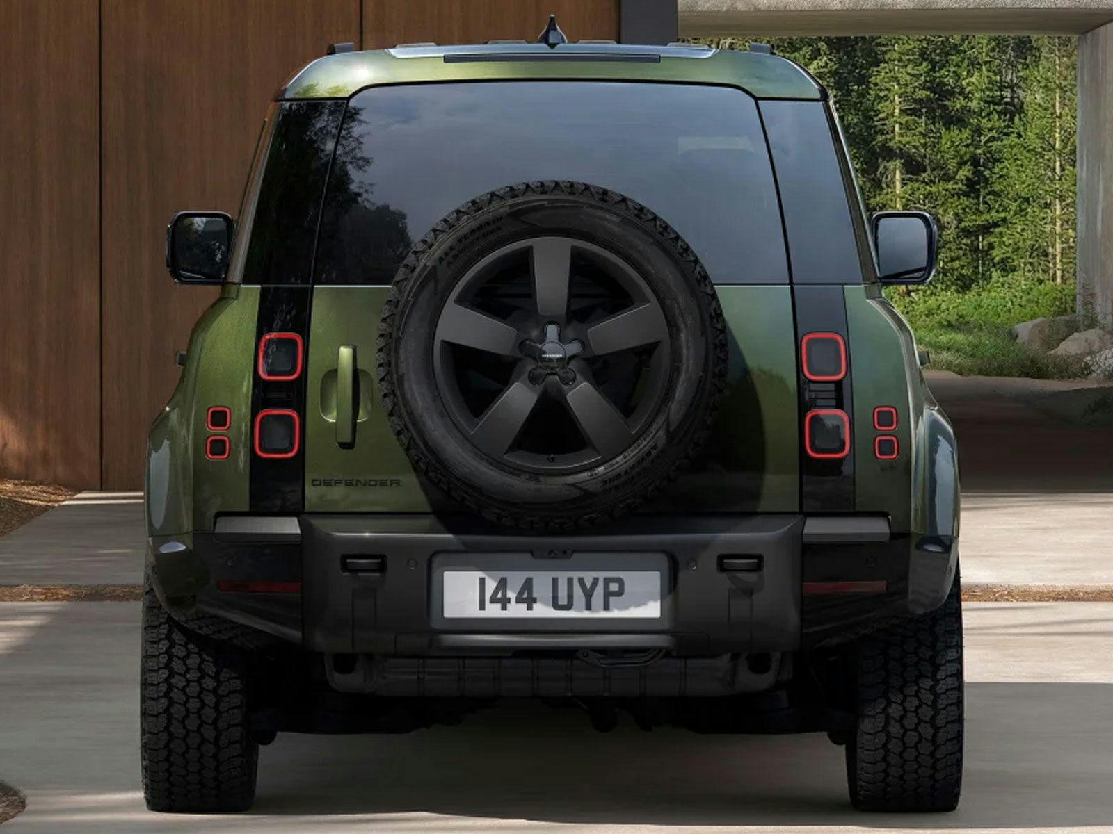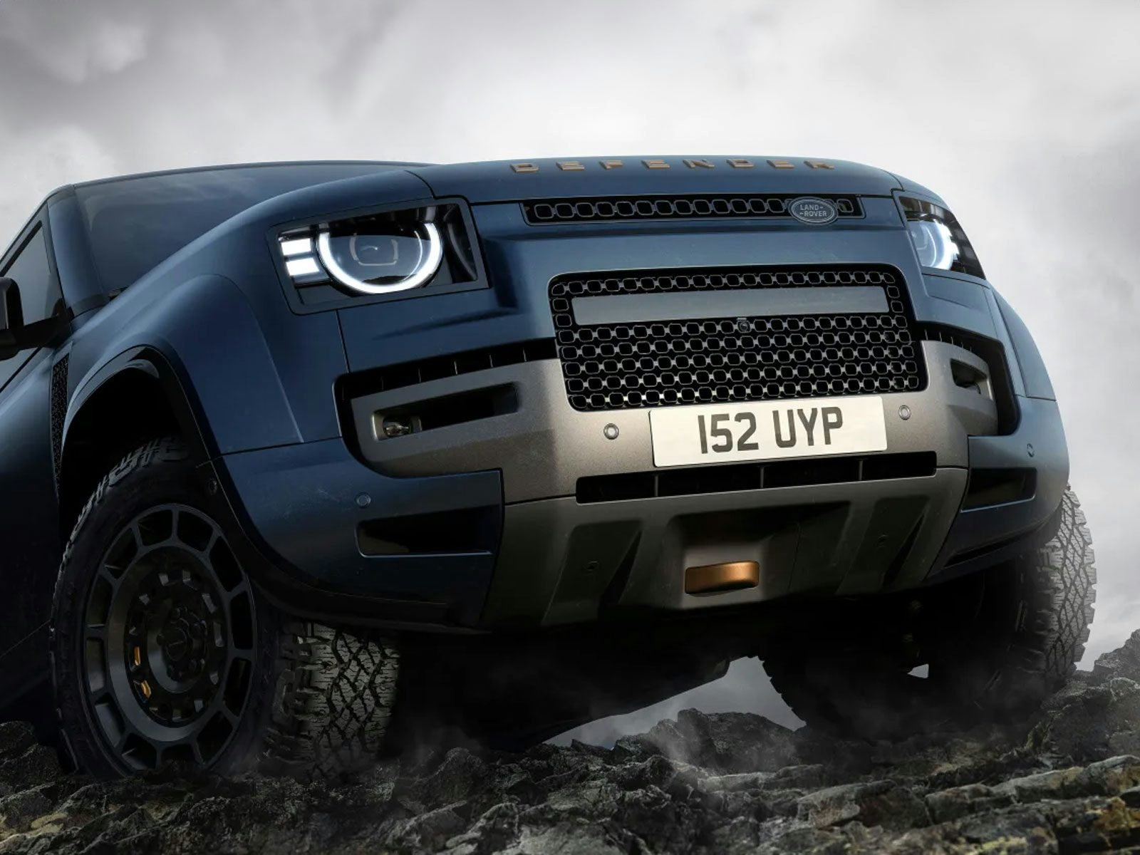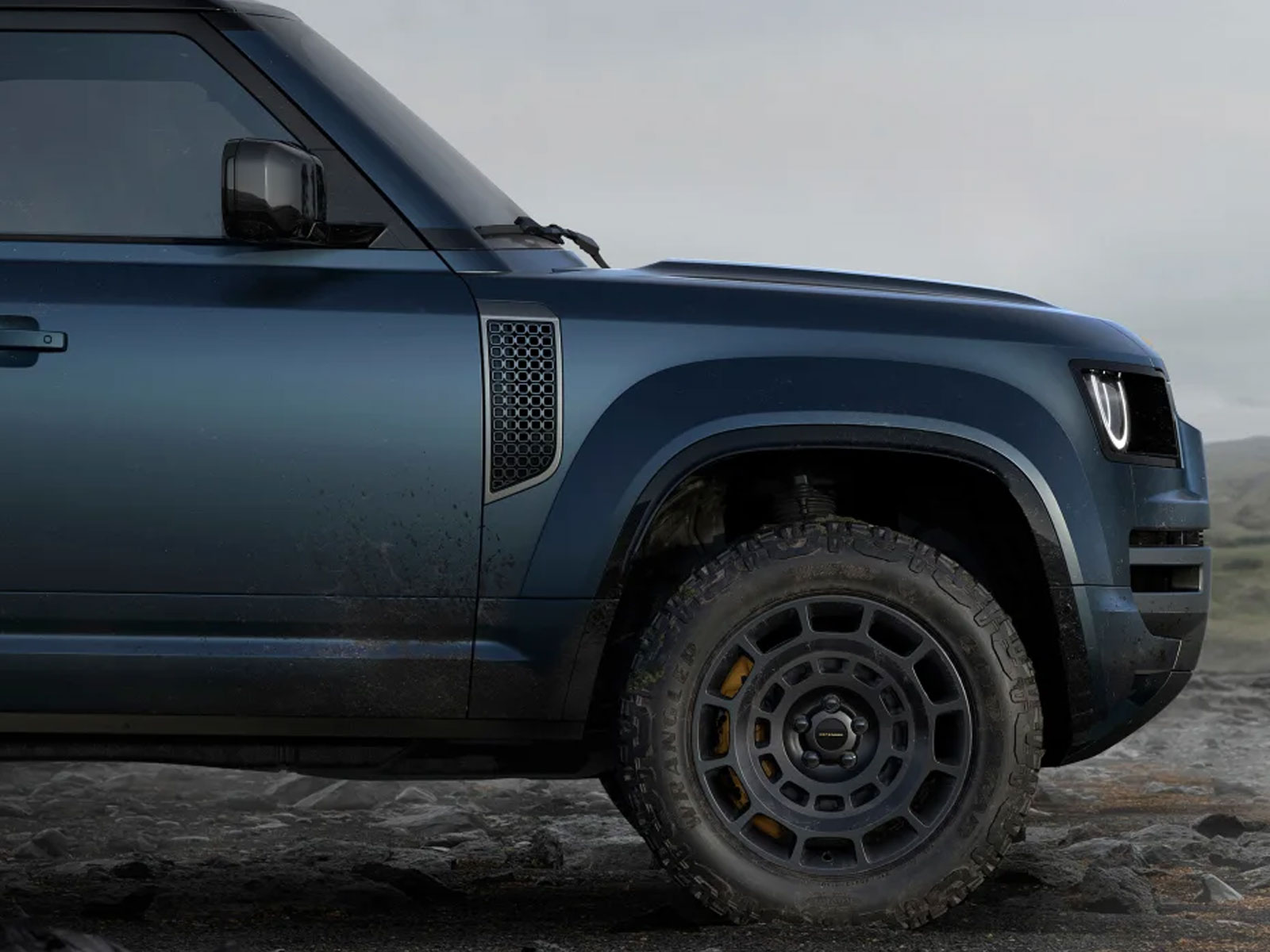 También se incorporan nuevos detalles texturizados en el capó y las tomas laterales, llantas opcionales de 22 pulgadas con diseño de siete radios, tapacubos en negro brillante con el nombre Defender y una barra de parrilla también en negro con el logo Land Rover oscurecido.