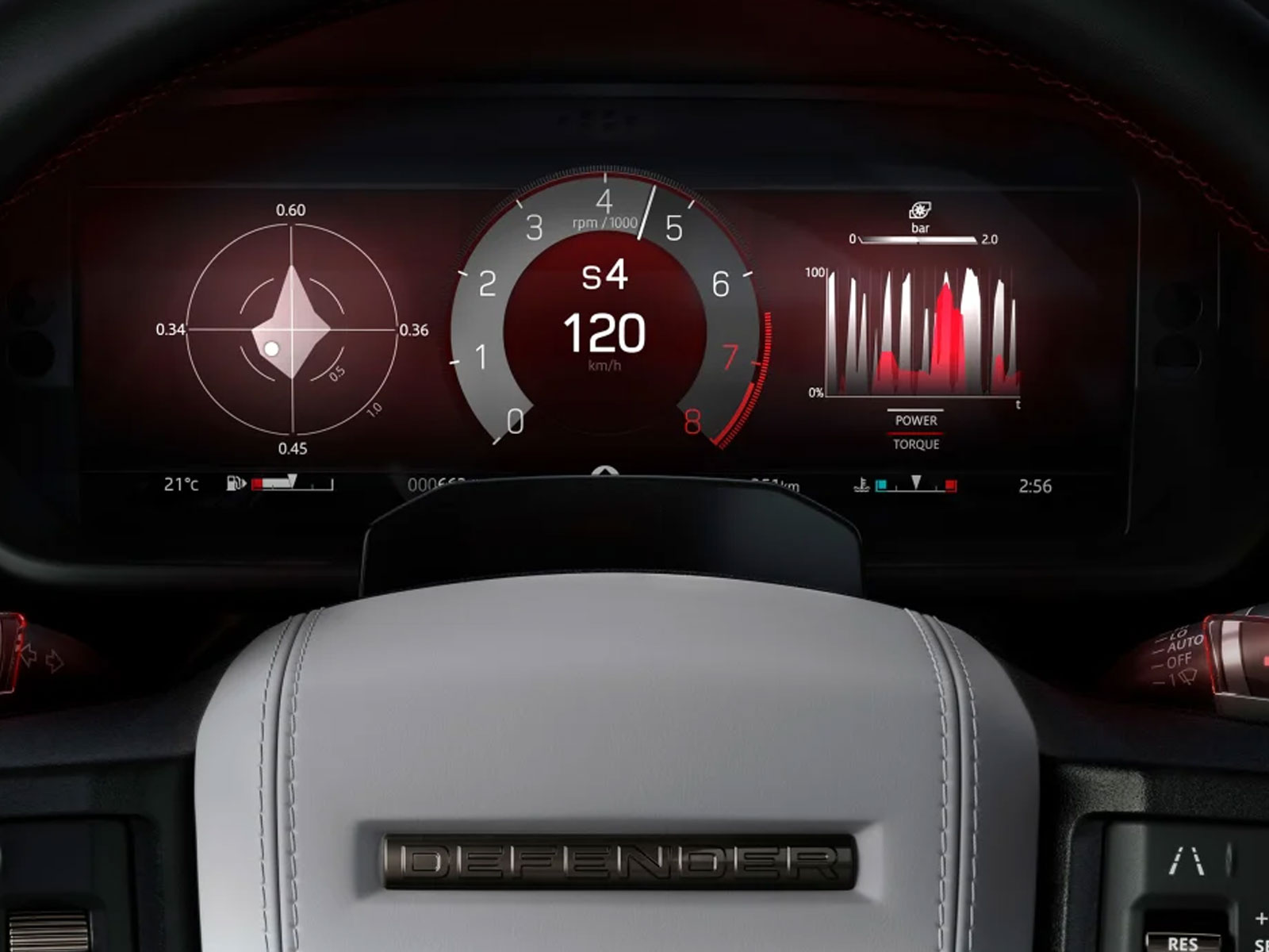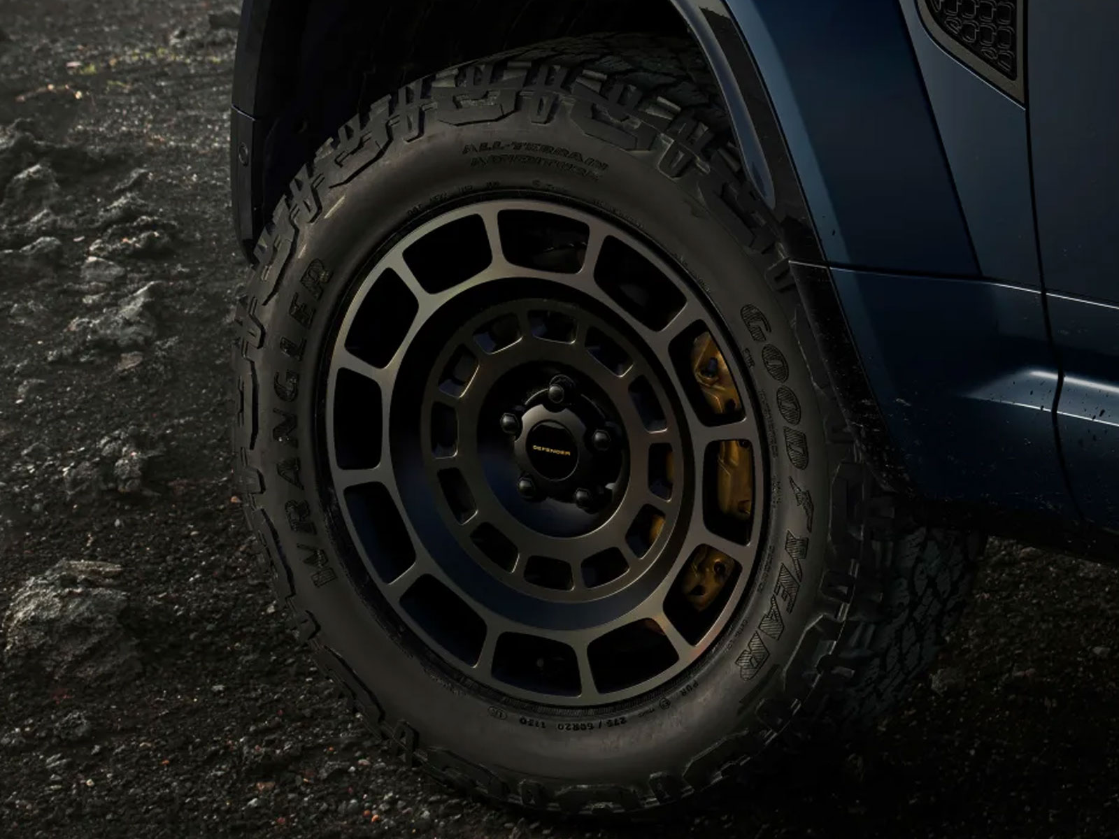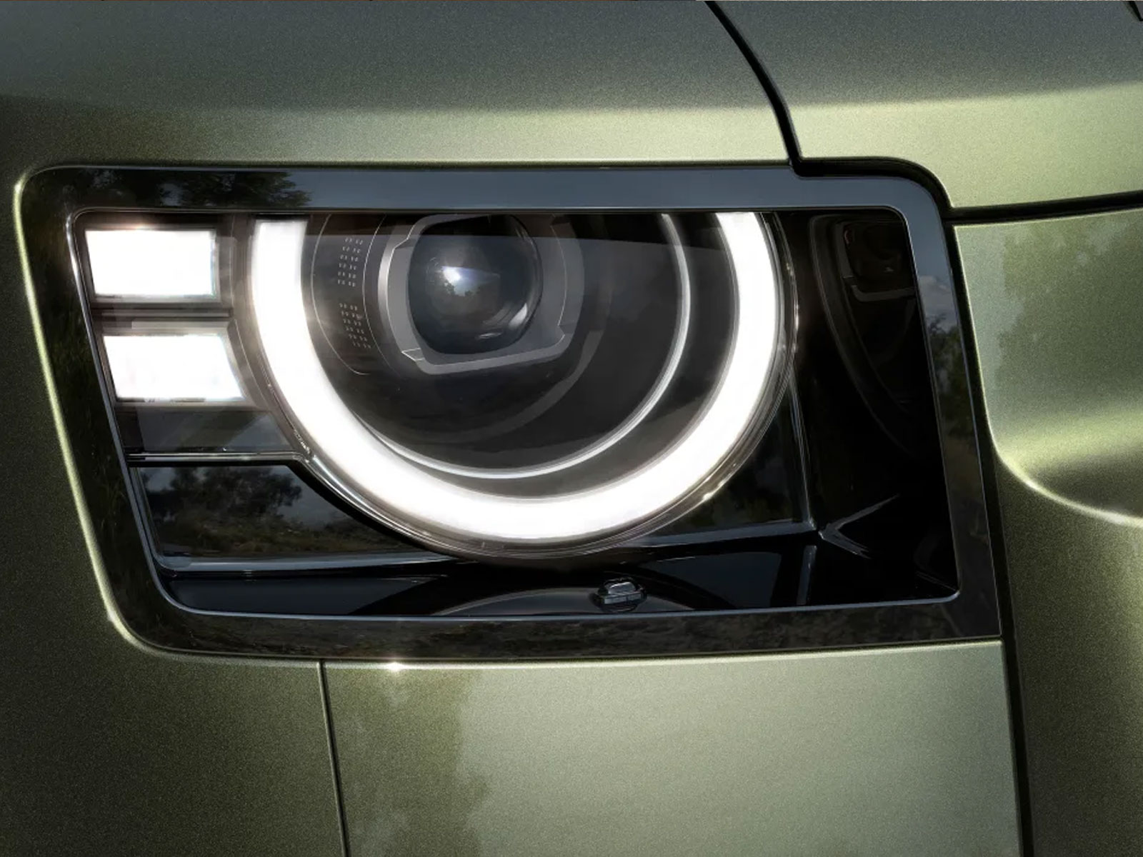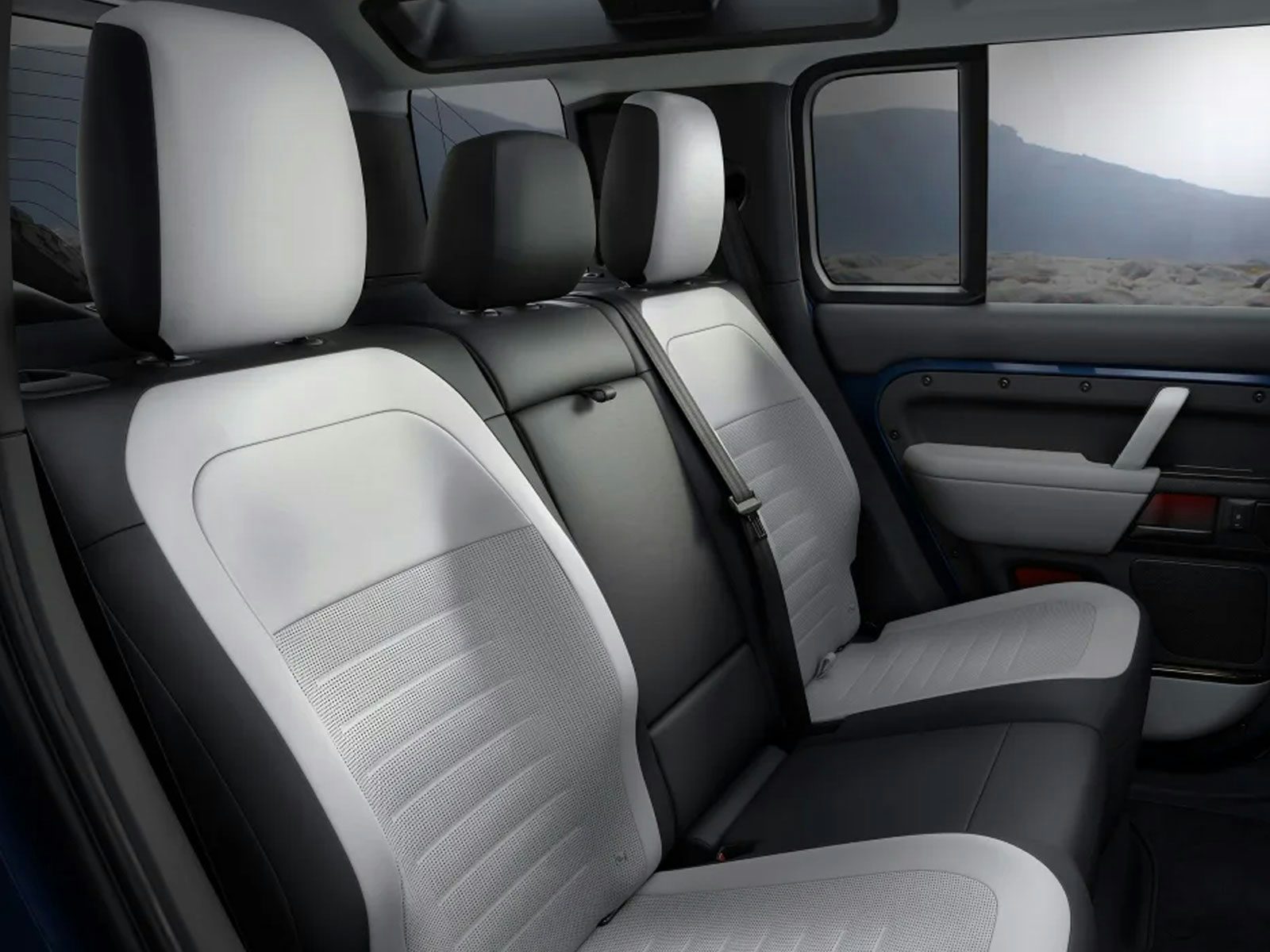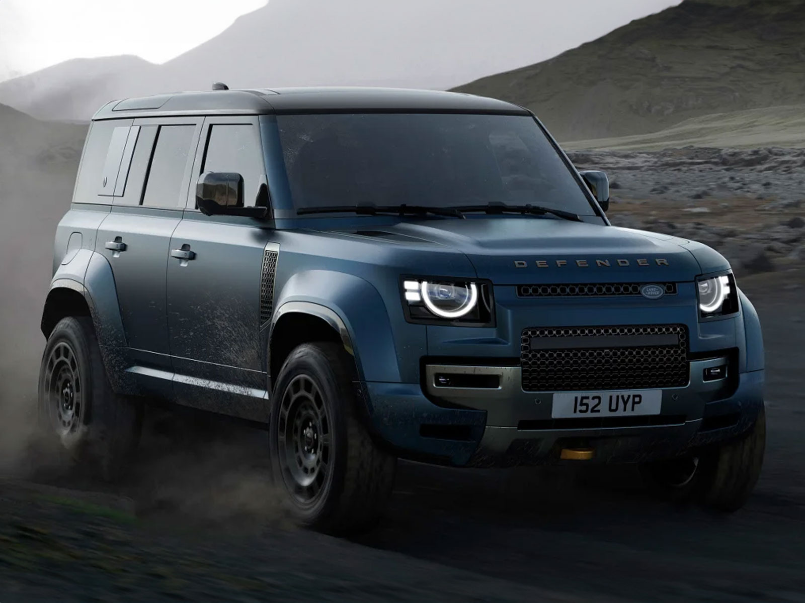 También se incorporan nuevos detalles texturizados en el capó y las tomas laterales, llantas opcionales de 22 pulgadas con diseño de siete radios, tapacubos en negro brillante con el nombre Defender y una barra de parrilla también en negro con el logo Land Rover oscurecido.