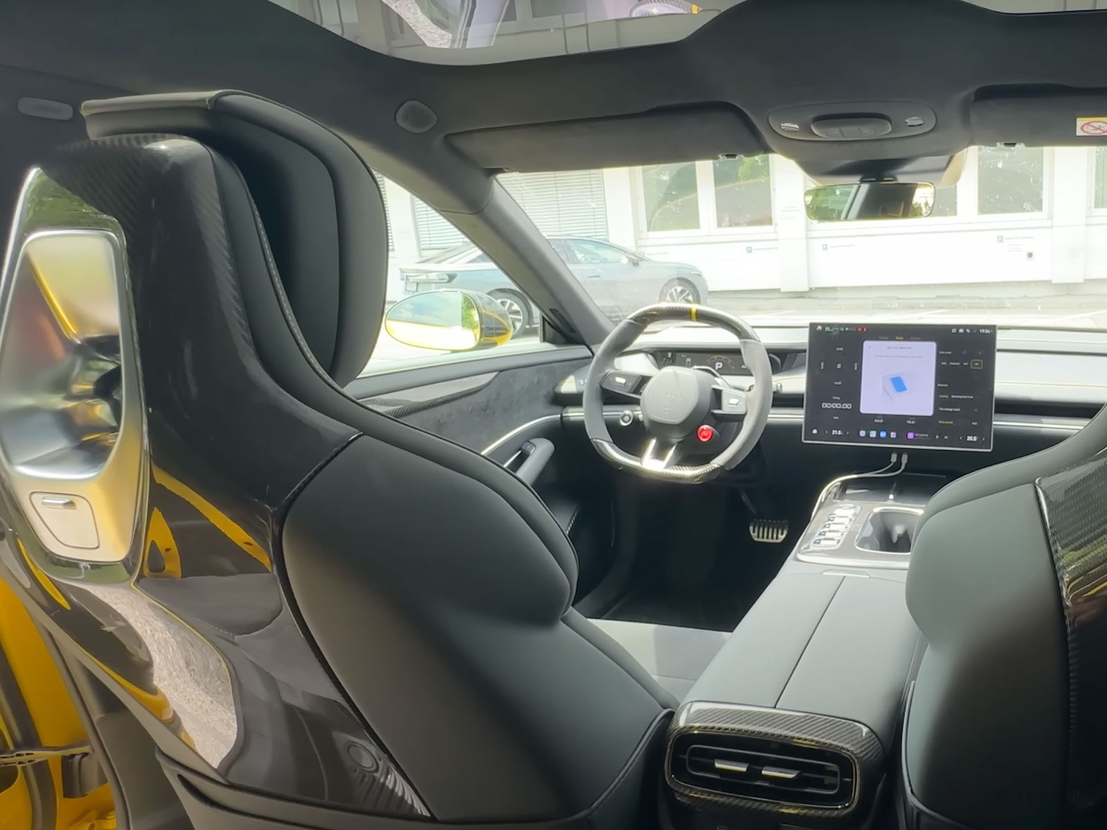 Todo en este coche gira en torno al software: desde los modos de conducción hasta la carga, pasando por una app llamada Trackmaster que guarda circuitos y mide vueltas. Lleva 12 cámaras, 5 radares y 3 LIDAR, además de un chip de Nvidia pensado para conducción autónoma.