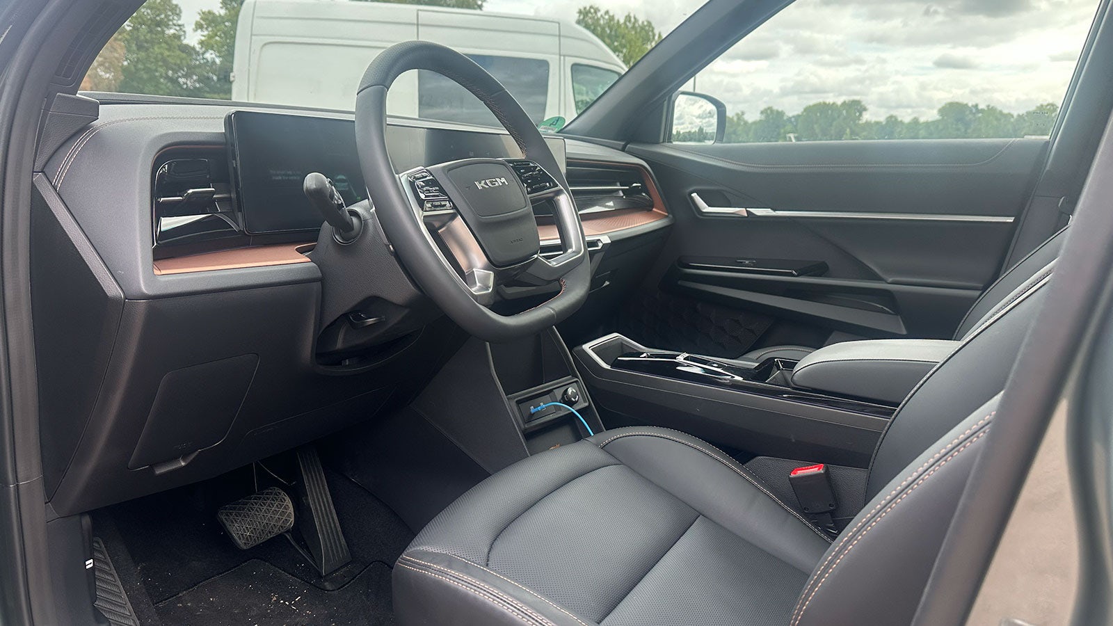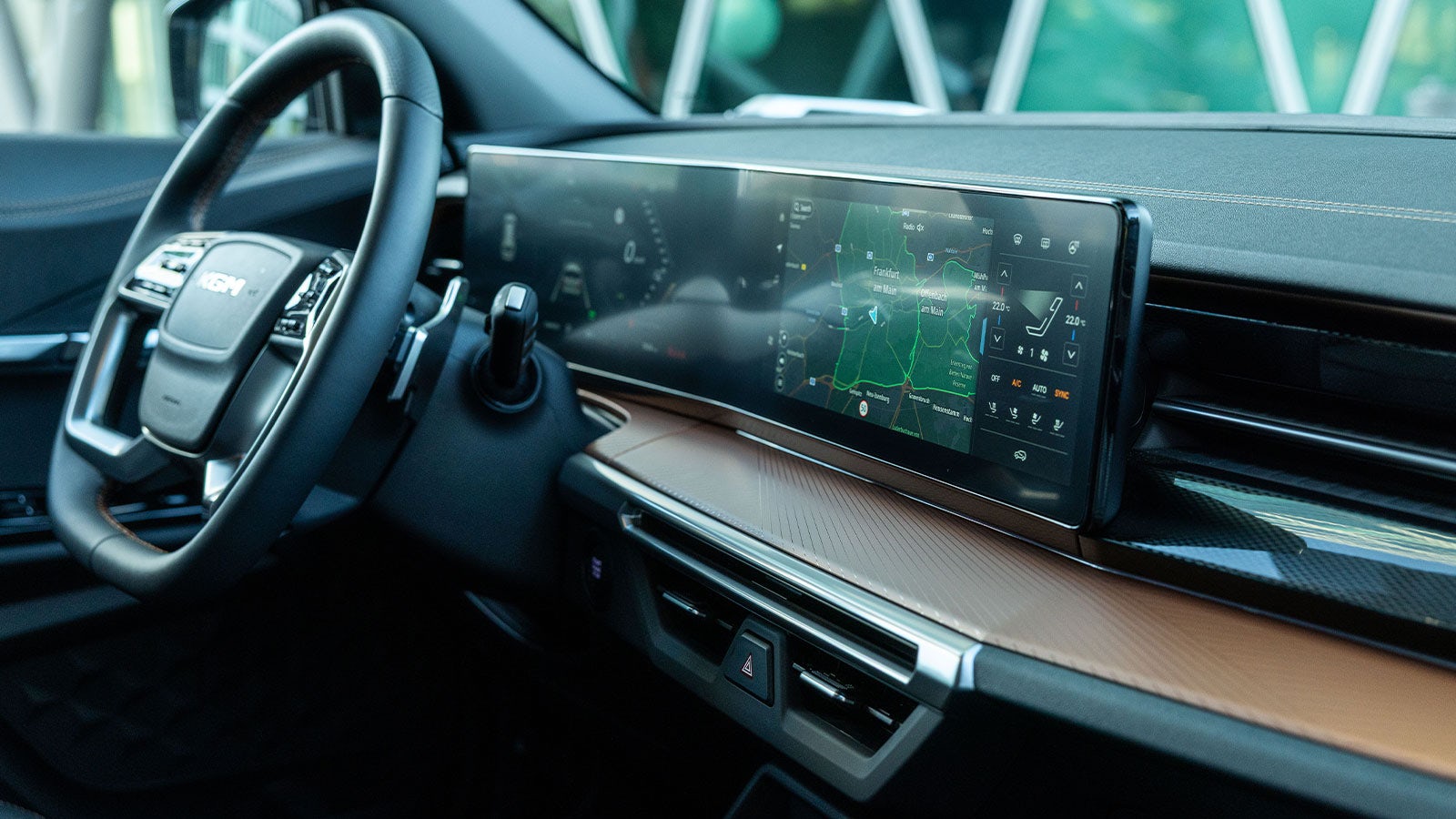 En el interior se repite la fórmula “Slim & Wide” que hemos descrito en el Torres. De hecho, son muy parecidos, con la misma pantalla panorámica de 12,3 pulgadas y el sistema multimedia Athena 2.0. La consola flotante añade cargador inalámbrico y varios huecos de almacenamiento. La segunda fila destaca por el espacio para piernas y la posibilidad de reclinar o deslizar los asientos.