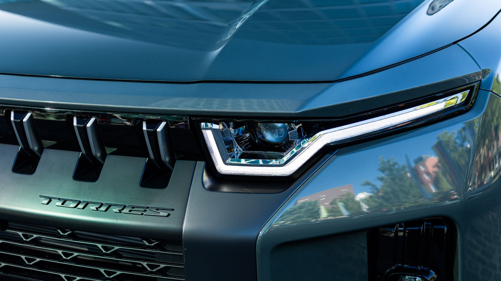 Su diseño es el mismo que el del Torres original: conserva la identidad robusta de la marca, con parrilla vertical, faros LED y líneas muy angulosas marcadas en el capó. La parte trasera recuerda a los SUV clásicos, mientras que las ópticas LED incluyen detalles inspirados en la bandera coreana.