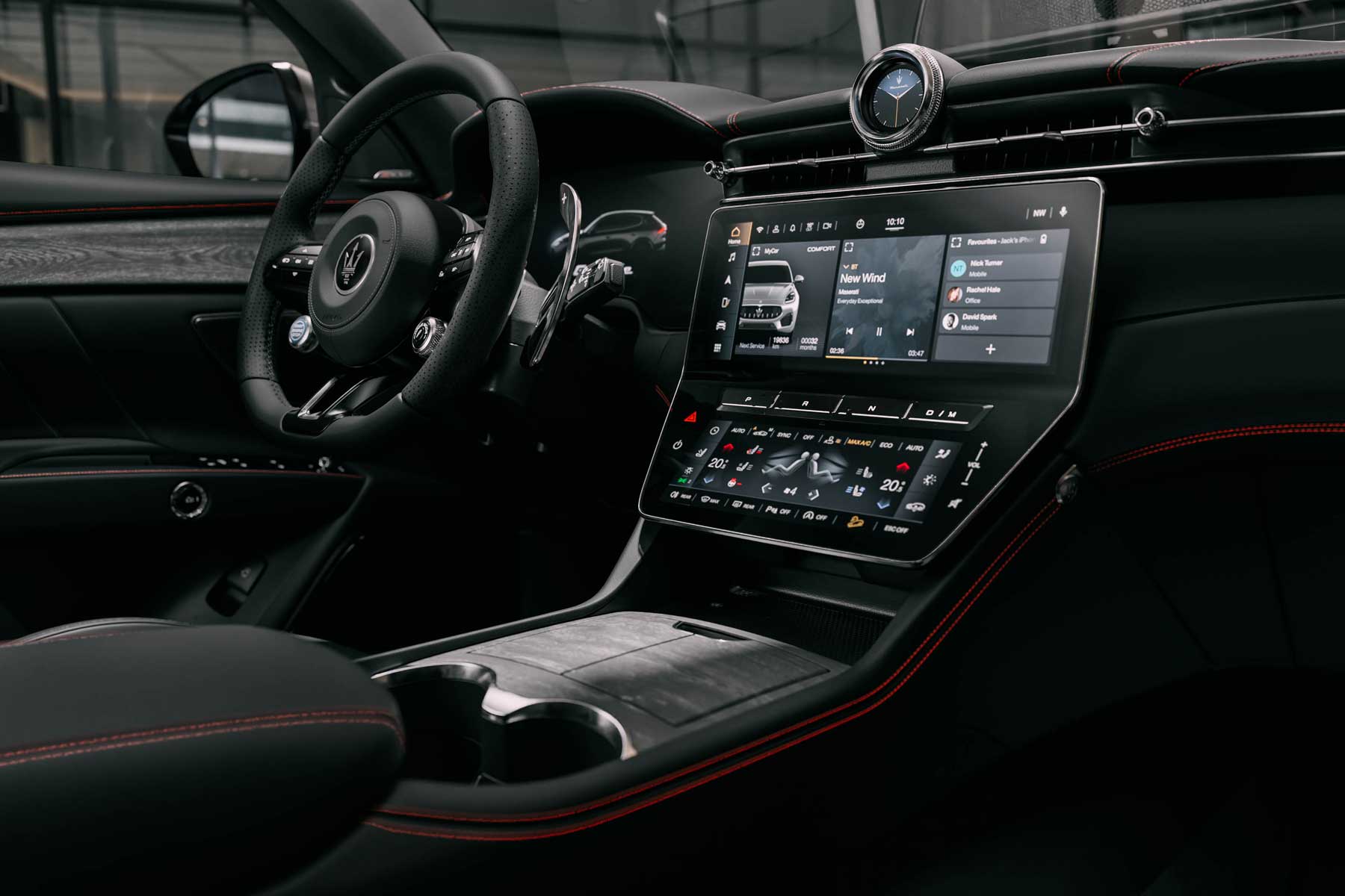 Otro avance importante es el preacondicionamiento automático de la batería. Cuando el sistema detecta que se ha programado una estación de carga rápida en la ruta, ajusta la temperatura de la batería para acelerar el proceso de carga. Además, el vehículo puede climatizar el interior de forma remota mediante la aplicación Maserati Connect, garantizando una temperatura confortable antes de iniciar el viaje.