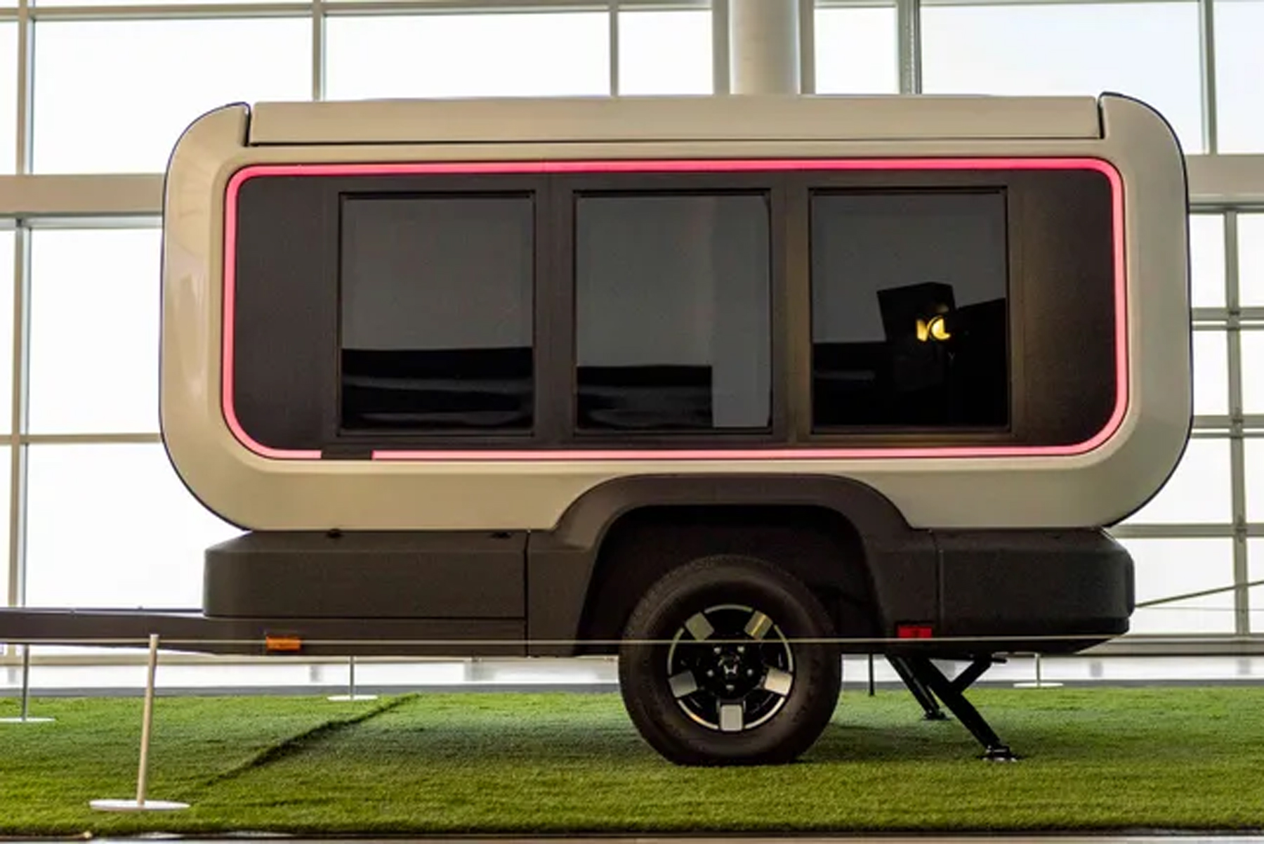 El elemento clave es su arquitectura modular: cada ventana puede sustituirse por distintos módulos intercambiables. Entre los accesorios previstos se incluyen una cocina exterior, una ducha, un sistema de aire acondicionado y otros elementos que se pueden añadir o retirar según el tipo de viaje.