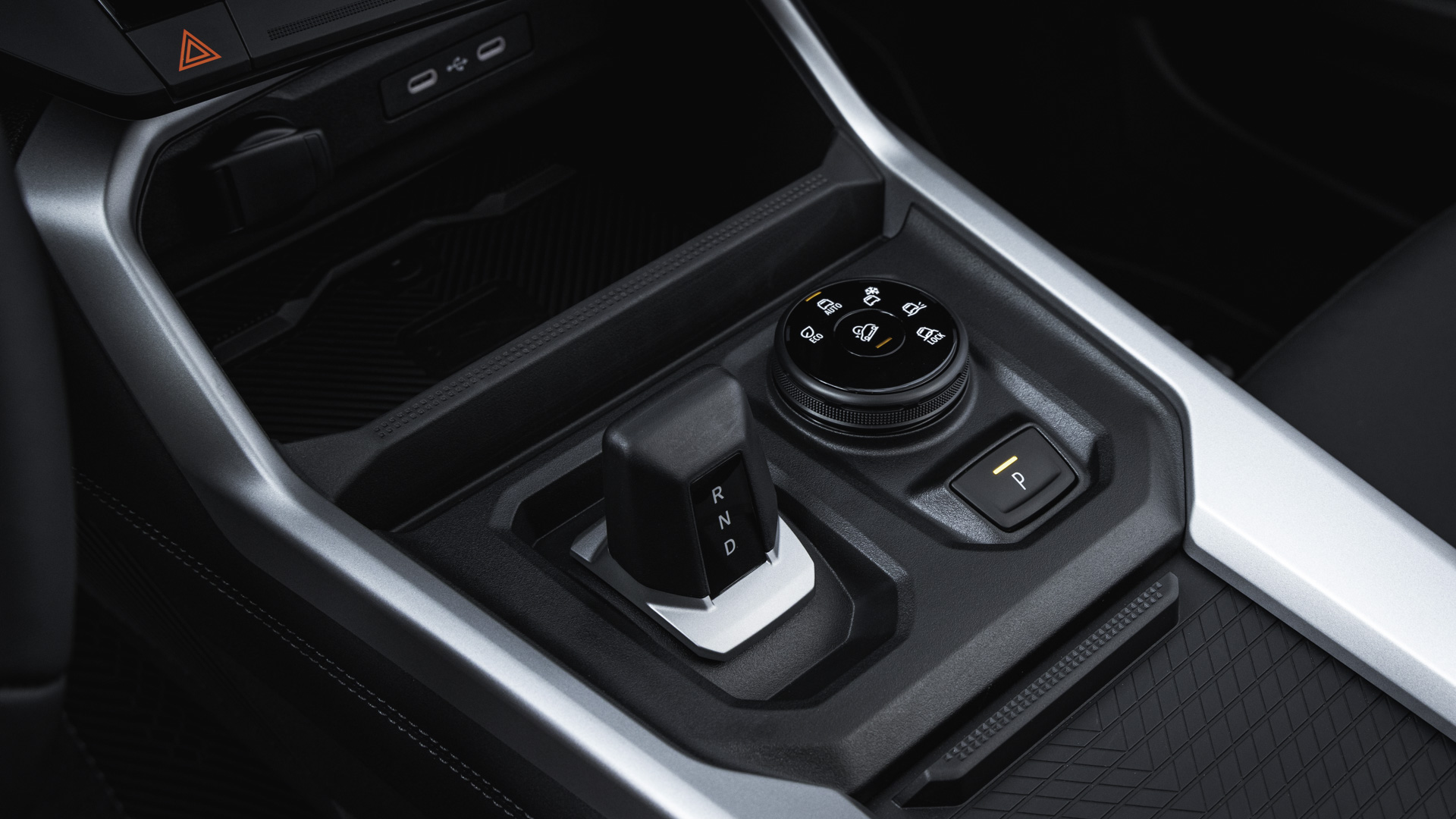 En la consola central de los dos modelos hay una ruleta que te permite seleccionar los modos de conducción: Auto gestiona automáticamente el paso entre 4×2 (eléctrico o térmico) y 4×4; Eco prioriza el ahorro y activa el 4×4 si falta adherencia; Snow mejora la seguridad en firmes muy deslizantes; Mud/Sand optimiza la tracción en terrenos blandos como arena o barro; Lock fija el 4×4 para uso off-road a baja velocidad; y el Hill Descent Control mantiene una velocidad estable en bajadas resbaladizas (entre 3 y 30 km/h), aunque no se puede regular mediante los mandos del control de velocidad como en otros todoterreno.
