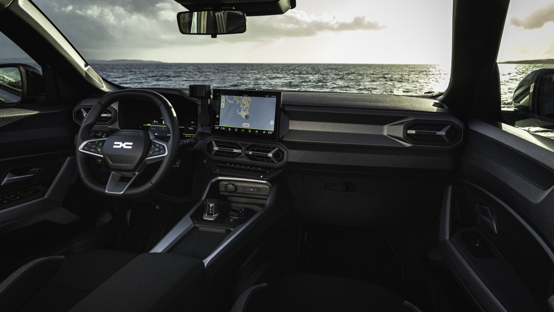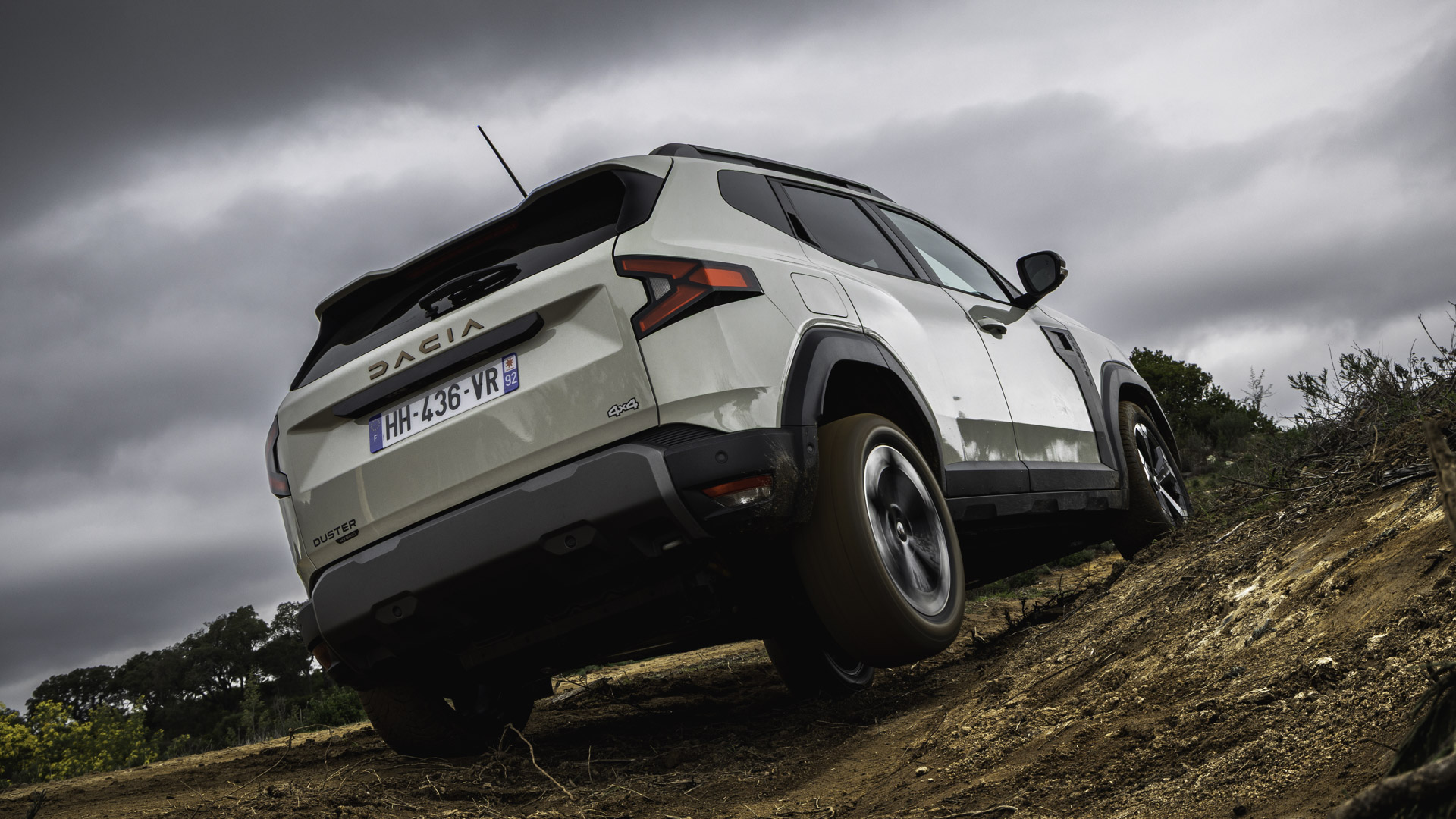 Si lo digo así, alguien puede esperar que hable de todoterrenos tradicionales. Pero no, Dacia no se ha complicado tanto la vida porque estos coches no dejan de ser sencillos. Lo que ha hecho es sacarle mucho partido a su sistema híbrido: las ruedas delanteras las mueve el motor de gasolina (de 140 CV), y las traseras un motor eléctrico de potencia discreta (31 CV) pero mucho par motor (87 Nm, la fuerza que suele dar un motor de unos 60 CV). No hay conexión física entre los dos ejes. Las funciones específicas para hacer todoterreno las consigue mediante una electrónica que pone de acuerdo al motor trasero y al delantero.