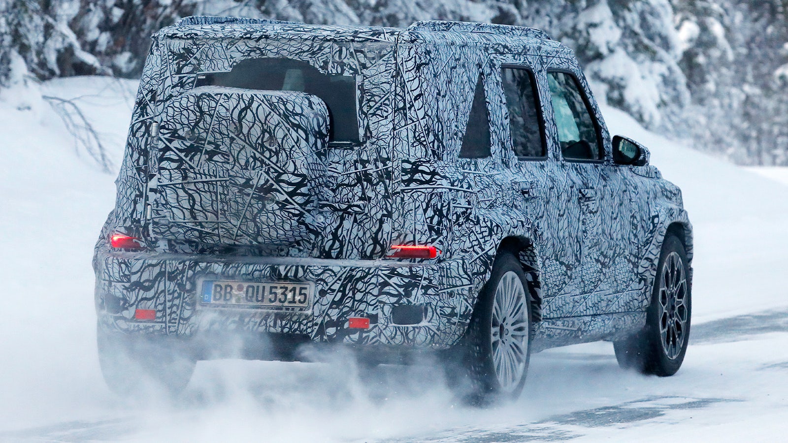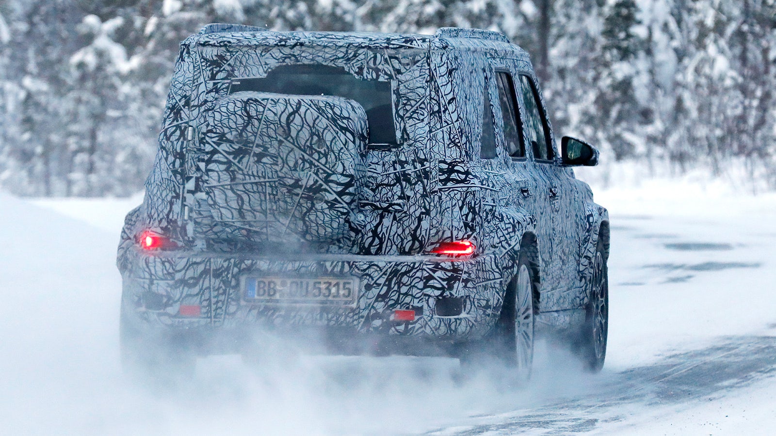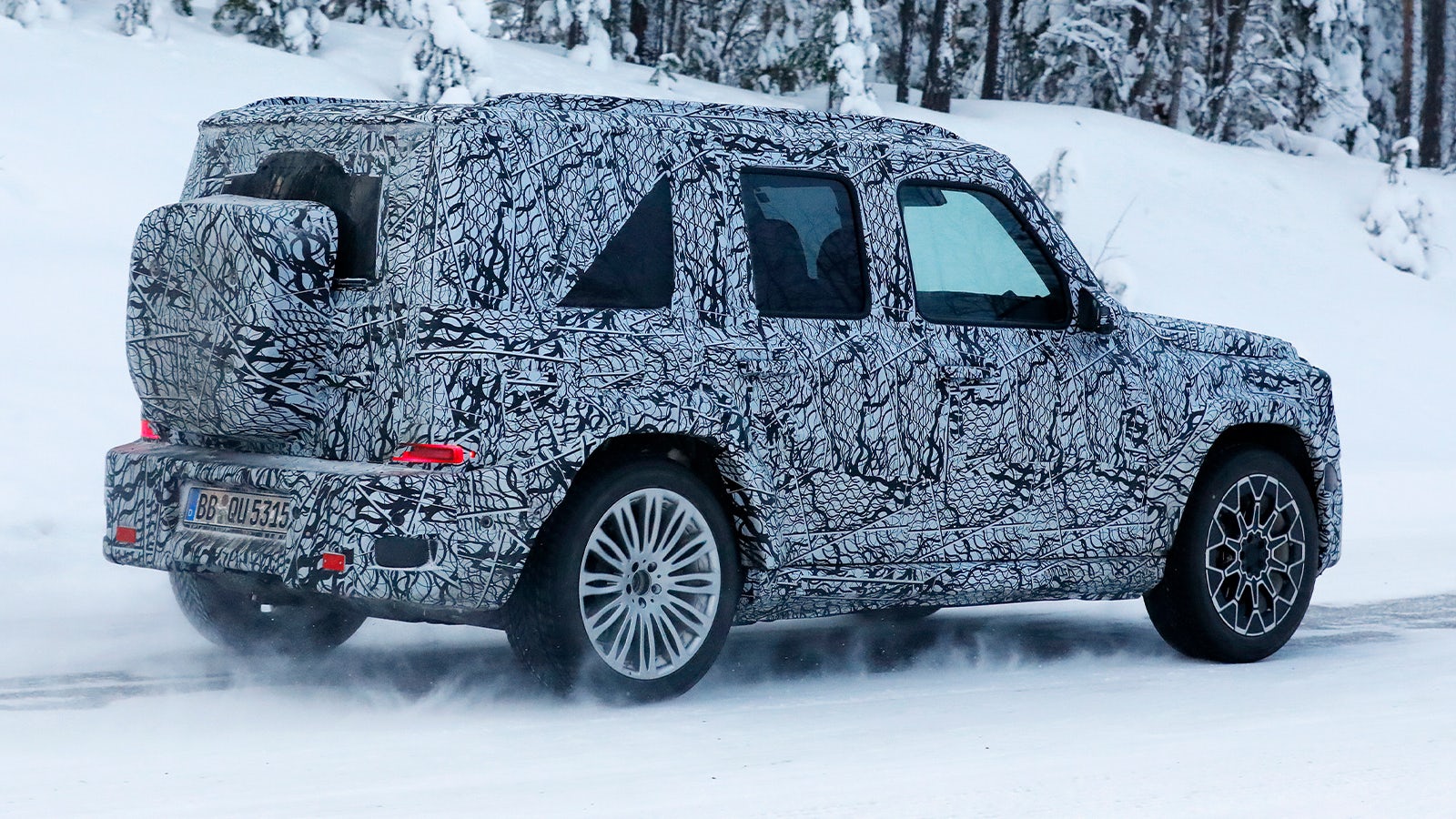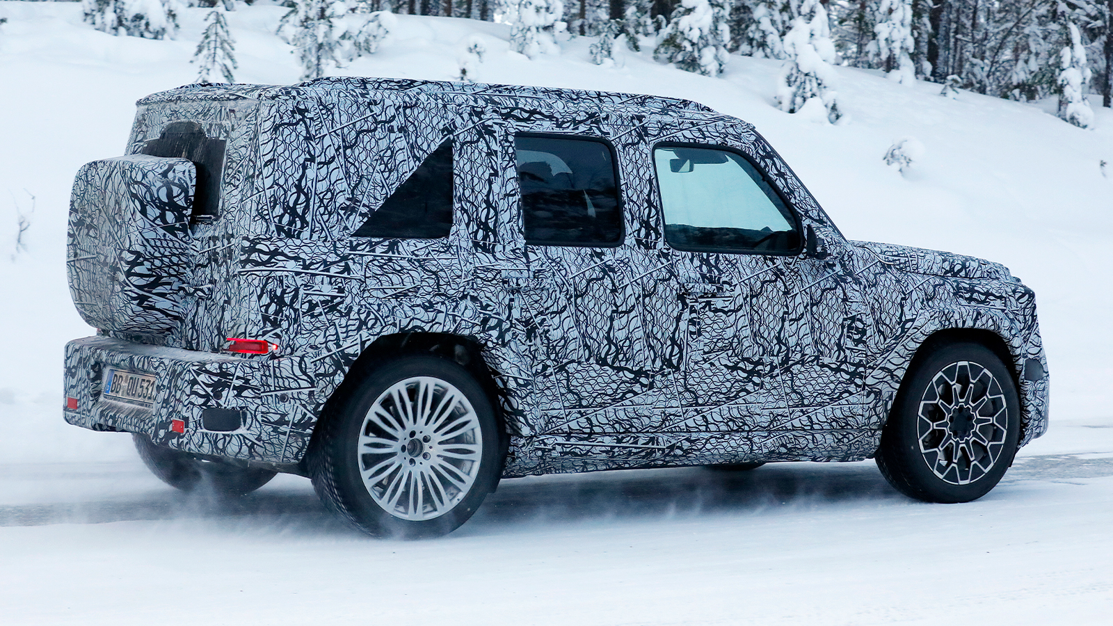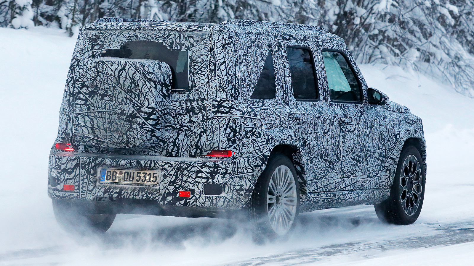Las unidades de pruebas cazadas mantienen los rasgos esenciales del Clase G: silueta completamente cuadrada, parabrisas casi vertical, pasos de rueda marcados y una trasera con portón lateral. En las imágenes espía se aprecia además un portaobjetos cuadrado con bordes redondeados integrado en el portón trasero, un detalle coherente con el ADN del modelo.