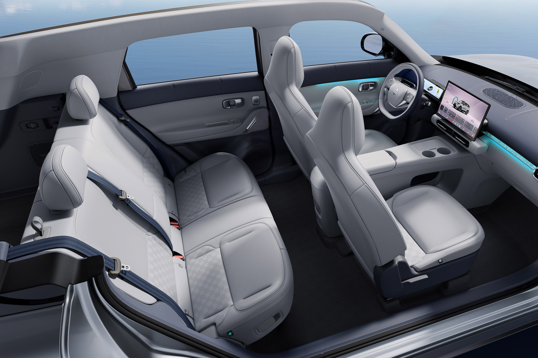 El habitáculo del B03X huye de los plásticos rígidos convencionales de los coches económicos. La marca ha utilizado materiales con certificación OEKO-TEX® Clase 1, garantizando que los tejidos sean seguros incluso para el contacto con la piel de bebés. El confort se refuerza con un techo panorámico de 1,55 m² capaz de filtrar el 99,9% de los rayos UV y un sistema de sonido envolvente 7.1 con 12 altavoces.