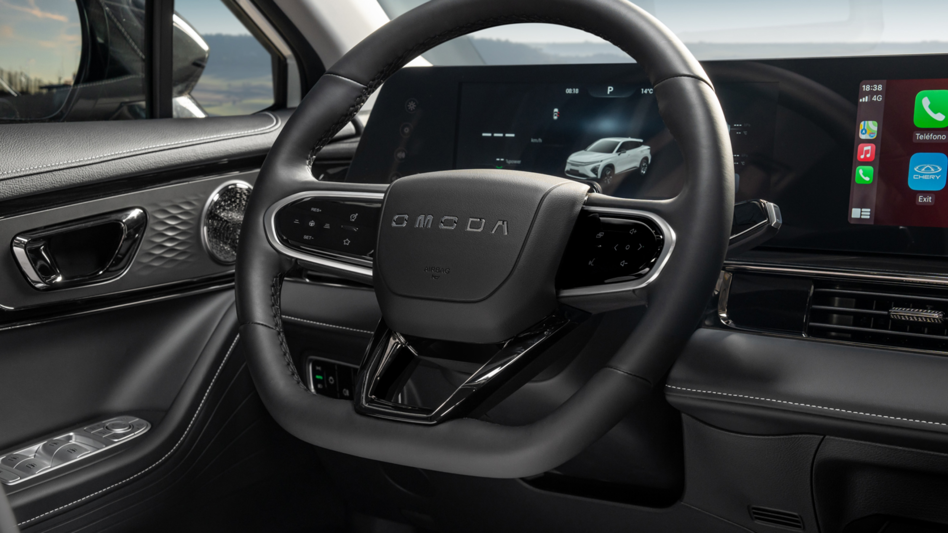 En esta variante eléctrica E5, Omoda ha aprovechado para darle unos retoque estéticos en general a todo el interior: salpicadero, consola central, puertas... Y que consiguen que visualmente sea más limpio y, especialmente la parte central y la zona de carga para smartphone, bastante más elegante y lujosa. Parece incluso que han mejorado la calidad de acabados.