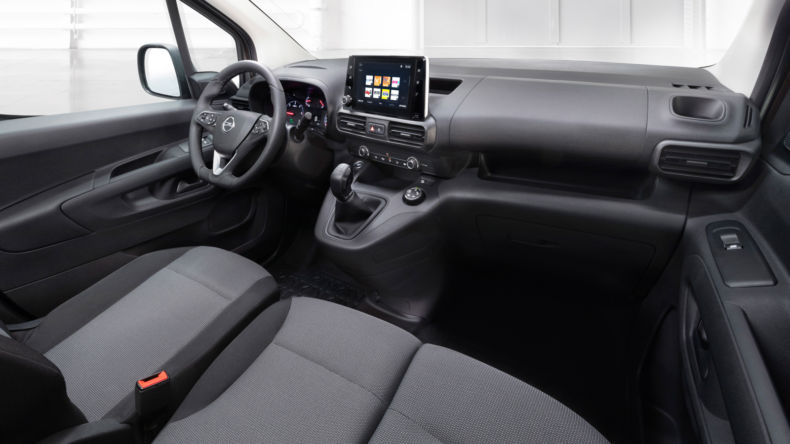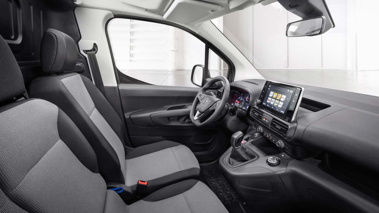 Las dimensiones interiores del Opel Combo Cargo son muy buenas en todo caso. En la versión de cabina simple, el conductor y el acompañante viajan con amplitud, y en la de cabina doble, otros tres pasajeros pueden hacerlo en tres asientos independientes.