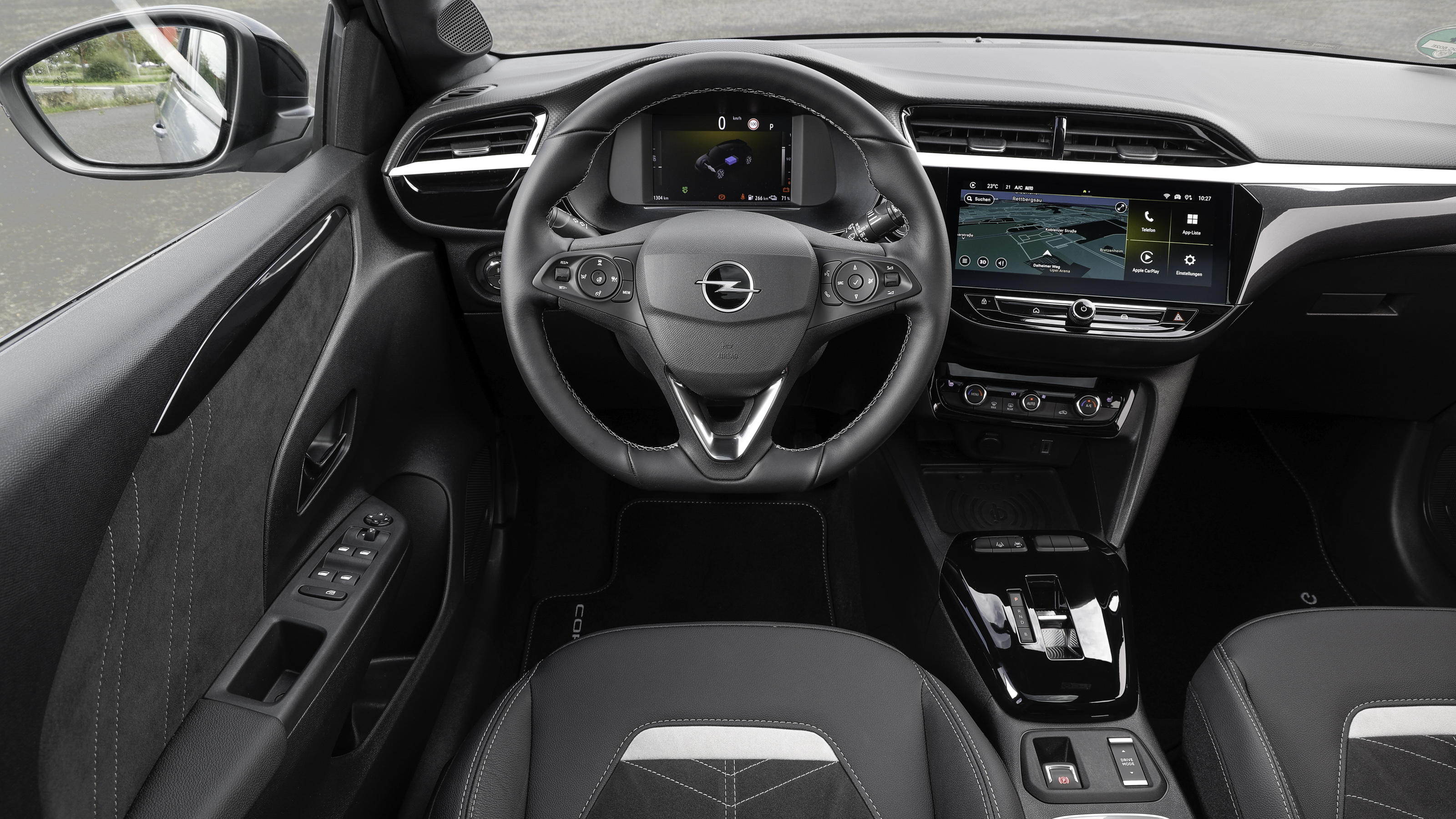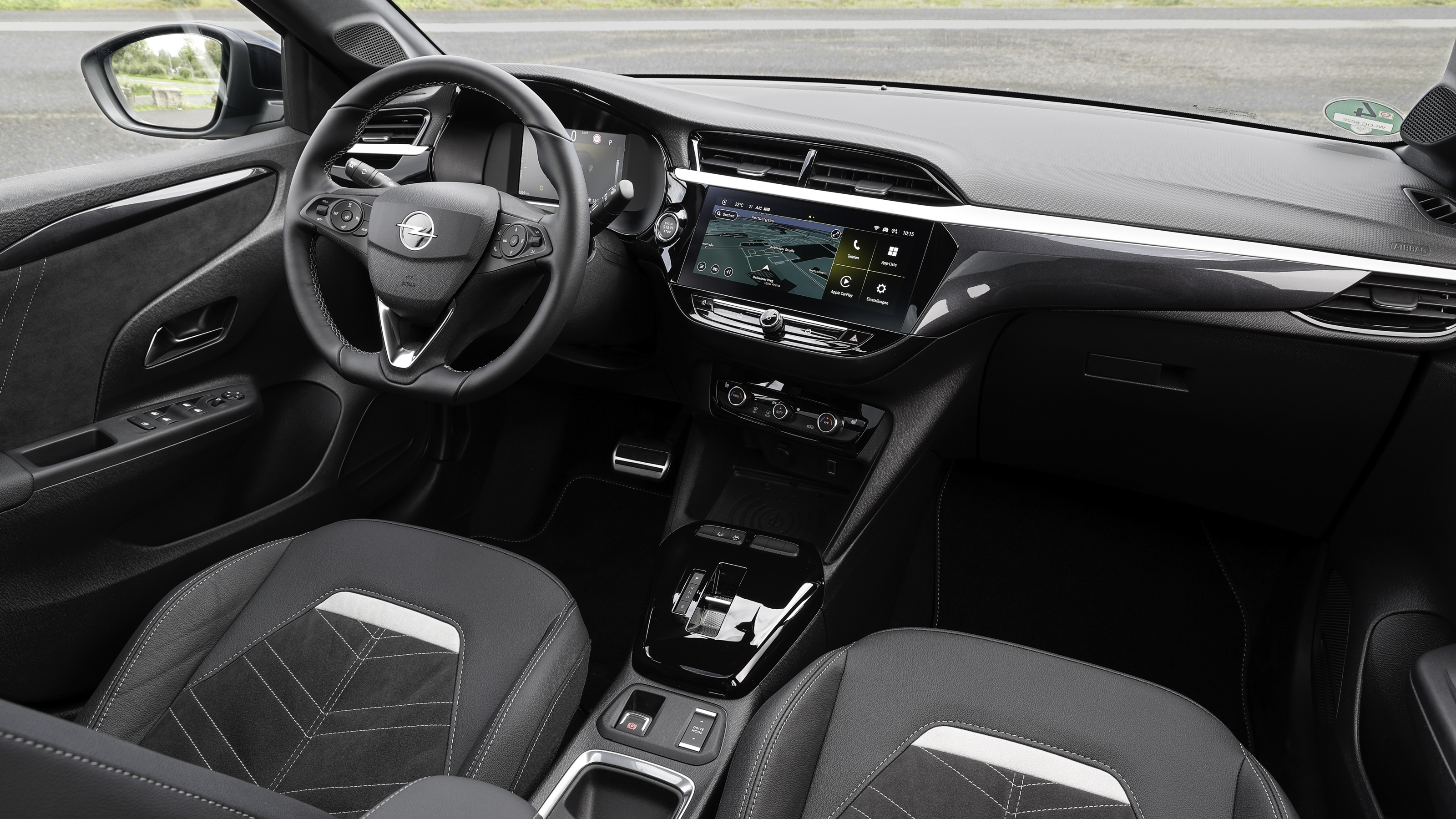 El Opel Corsa Electric mantiene prácticamente el mismo interior que la versión de combustión, con una capacidad adecuada para cuatro adultos y justa para cinco. Tapicerías y molduras fueron renovadas con la última puesta al día para darle un aspecto algo más cuidado. Van en función del acabado (acabados en plata en Edition, negro en GS).