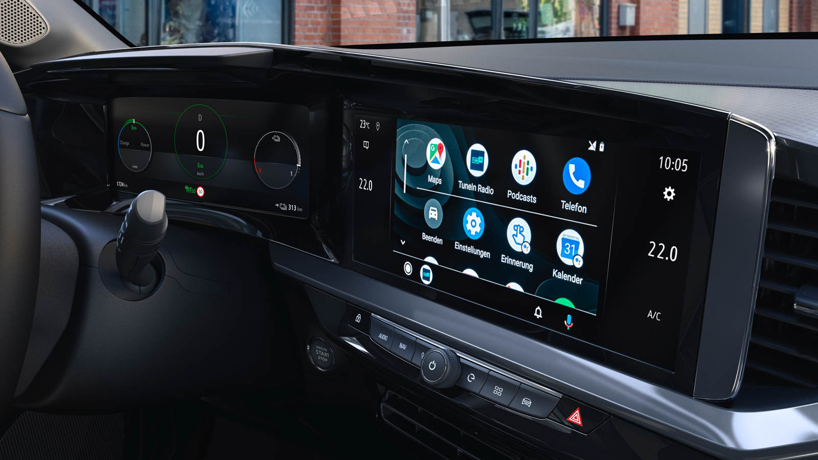 Toda la gama del Opel Mokka-e cuenta de serie con una pantalla táctil de 7” con conectividad Bluetooth. La compatibilidad con Android Auto y Apple CarPlay está disponible con todos los acabados excepto con el de acceso, Edition. Además, el cuadro de instrumentos también es digital de 7” en toda la gama. Opcionalmente se puede equipar un sistema de navegación integrada y existe también la posibilidad de que las dos pantallas sean de 10” y con navegación.