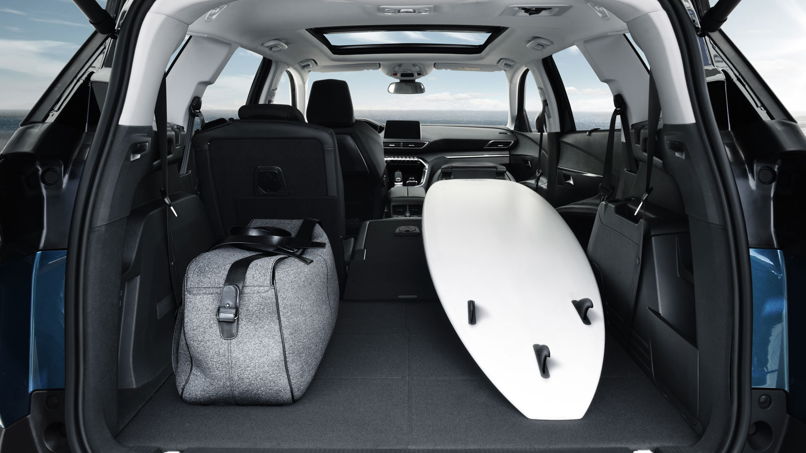El maletero del Peugeot 5008 es enorme: 780 litros con las dos filas de asientos en posición de servicio (y la segunda echada lo más adelantada posible, es decir, con el menor espacio para las piernas de los pasajeros). Supera a modelos tan afamados por su volumen de carga como el Skoda Kodiaq (650 l) y el Hyundai Tucson (620 l).