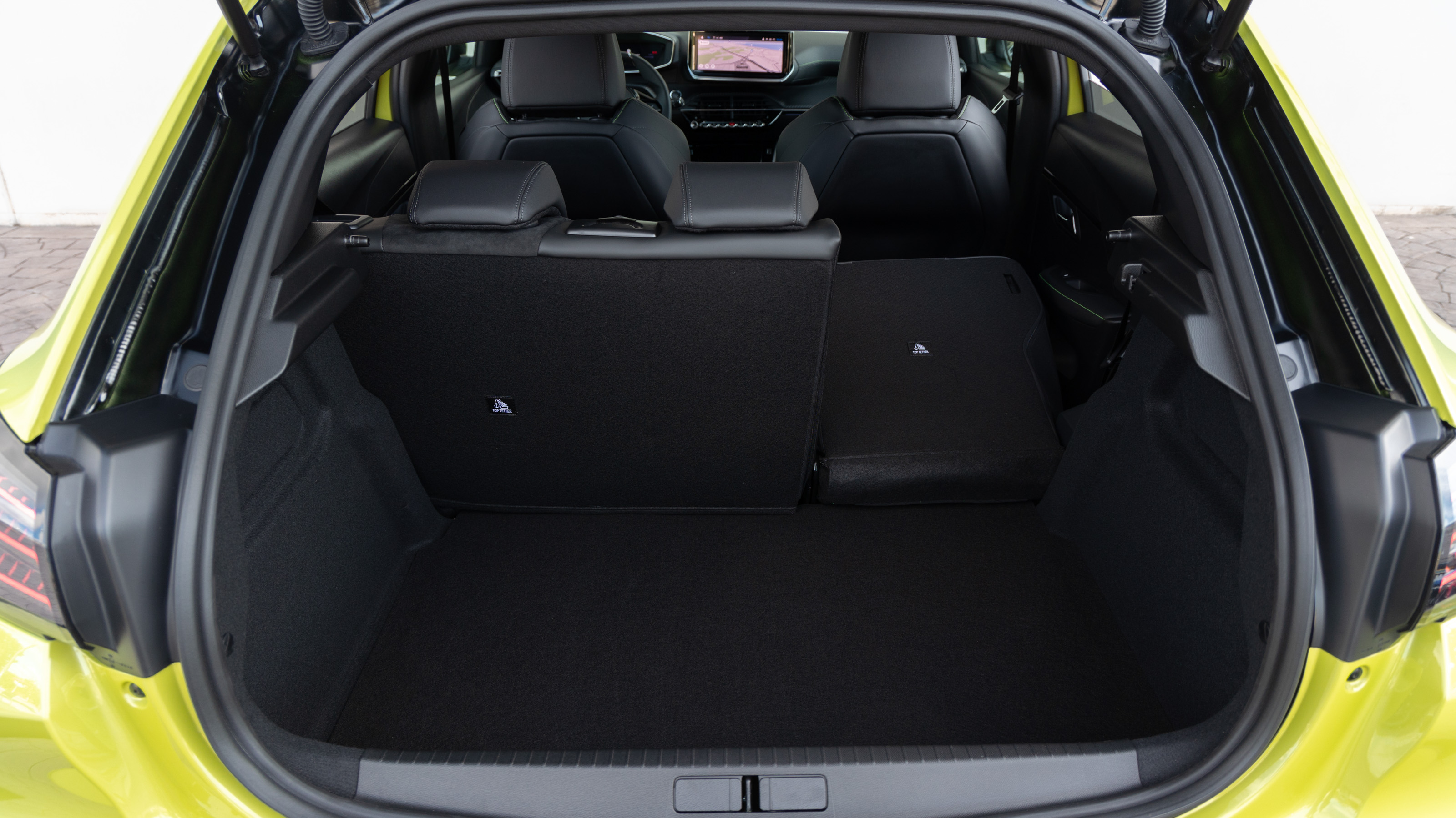 El maletero del Peugeot E-208 es de 309 litros. Es una capacidad normal teniendo en cuenta su tamaño y que está condicionado por el espacio que resta la batería con respecto a las versiones con motor de combustión, que hace también necesario recurrir a un kit de reparación de pinchazos. Es casi el mismo volumen que tiene el Opel Corsa-e, con 267 litros, mucha más capacidad que la que ofrece un Honda e (171 l), y mucha menos que la que da un Renault ZOE (338 l).