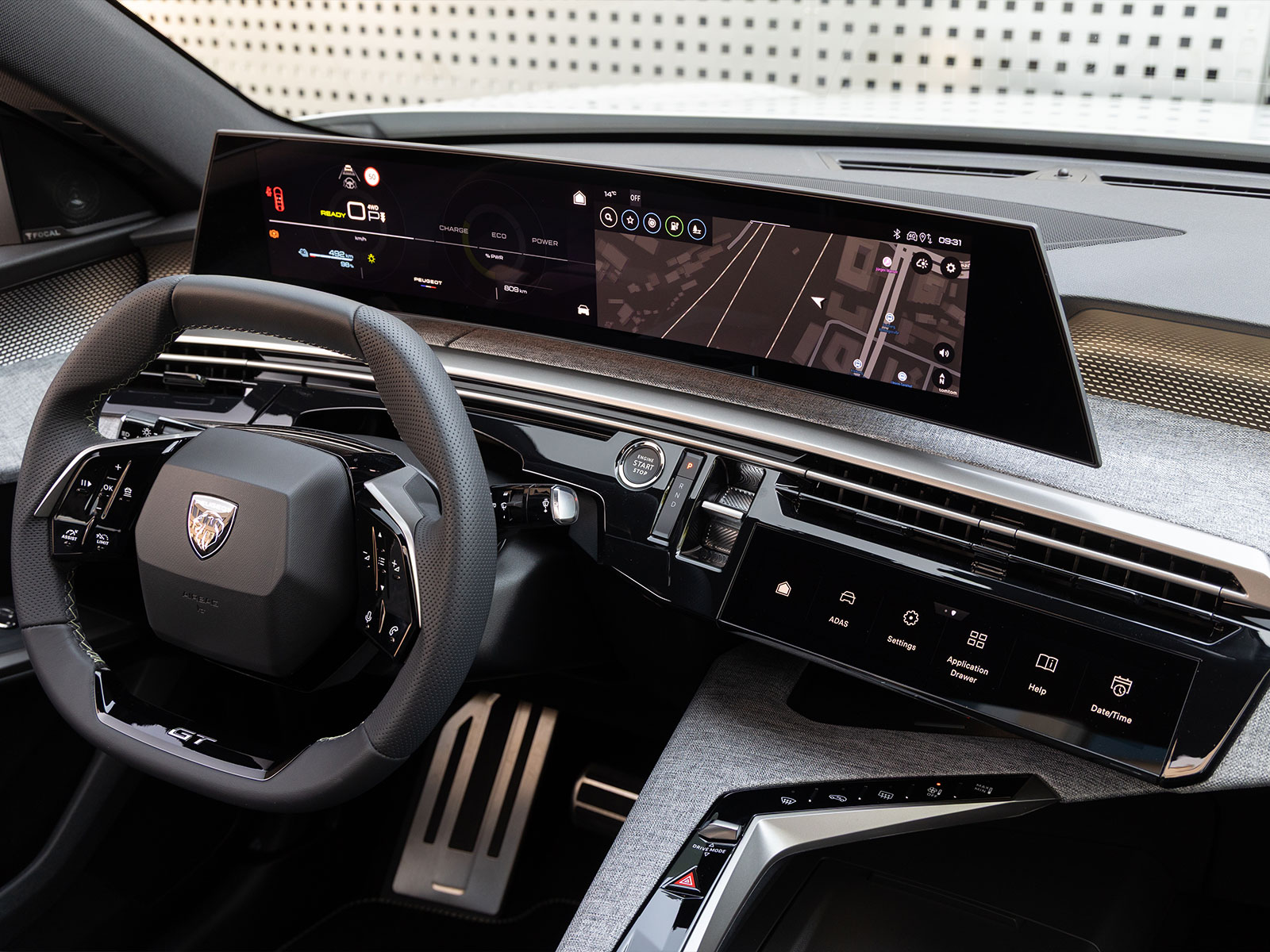 El habitáculo del E-3008 no presenta grandes novedades respecto a otras versiones, lo cual no es necesariamente algo negativo. El i-Cockpit sigue siendo el protagonista, centrado en mejorar la experiencia de conducción, con su pantalla curva flotante y buenos materiales en toda la consola. En la versión Launch Edition vienen de serie los asientos calefactados con masaje, techo solar, sistema de sonido Focal que suena extremadamente bien y un arsenal de ayudas a la conducción. Además, cuenta con una pantalla más pequeña en la parte inferior del salpicadero, el i-Toggle, que nos permite tener acceso rápido a nuestras apps más utilizadas y configurarlas a nuestro gusto para no perder tiempo navegando por menús.