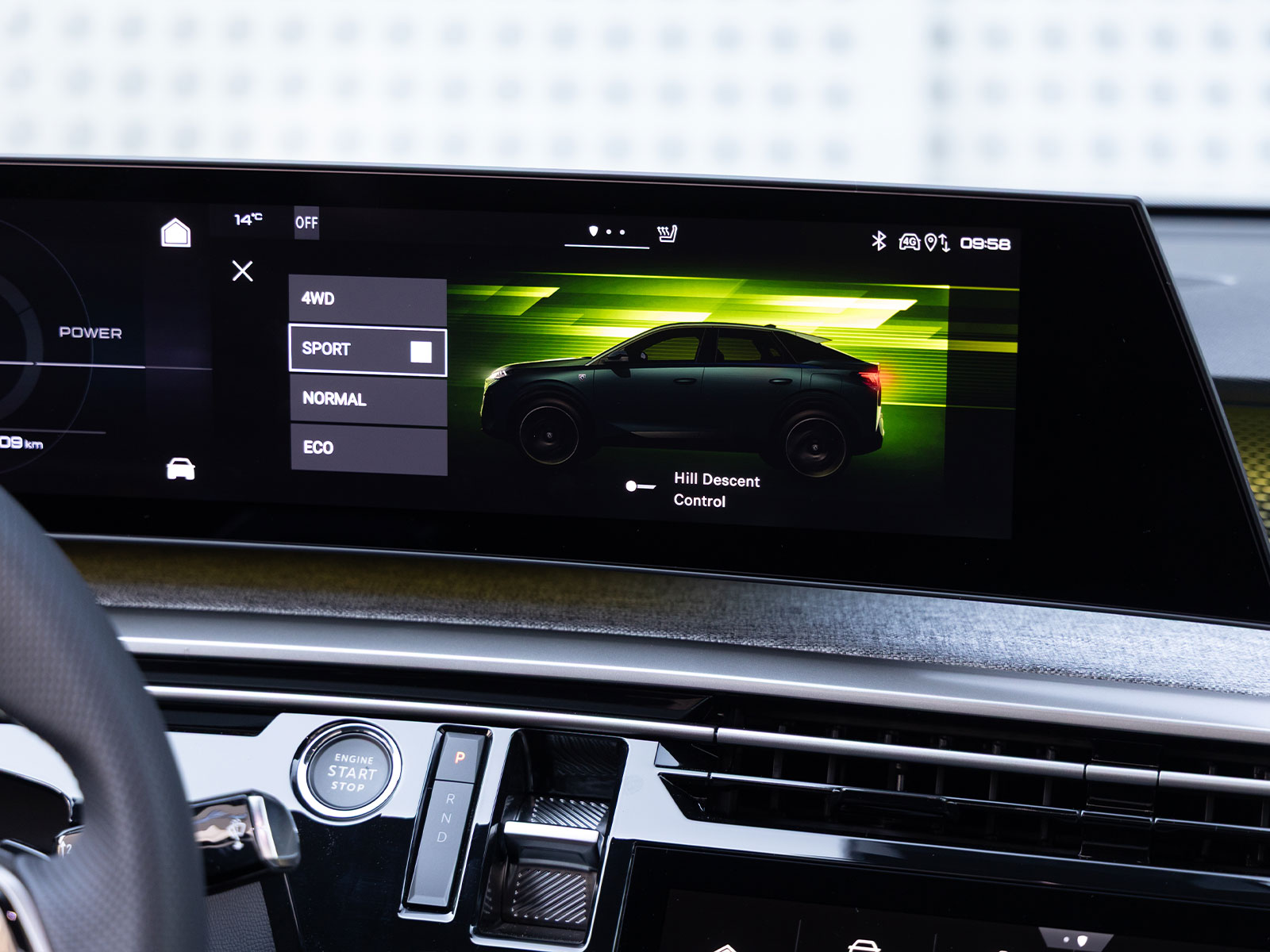 En cuanto a los modos de conducción que mencionábamos antes, encontramos concretamente 4. Se dividen en un modo normal de conducción, el modo Eco que prioriza el motor delantero, el modo 4WD que reparte tracción al 50% en cada eje y, finalmente, el modo Sport, que hace que el coche nos dé una respuesta inmediata del acelerador, endurezca la dirección y tengamos una experiencia de conducción más divertida en ciertos momentos.