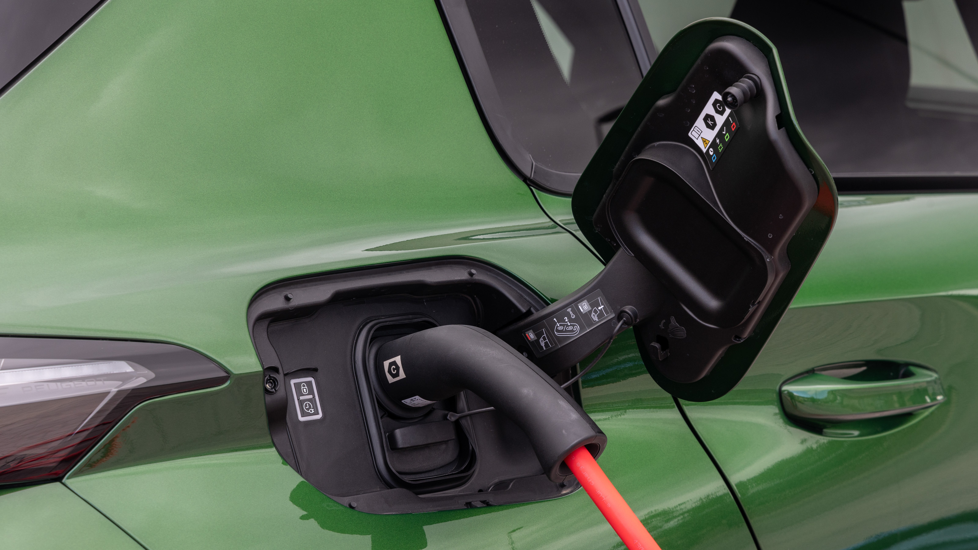 El cargador embarcado de serie para corriente alterna es de 11 kW. A esta potencia puedes recargar la batería completamente en 5 horas, según Peugeot.