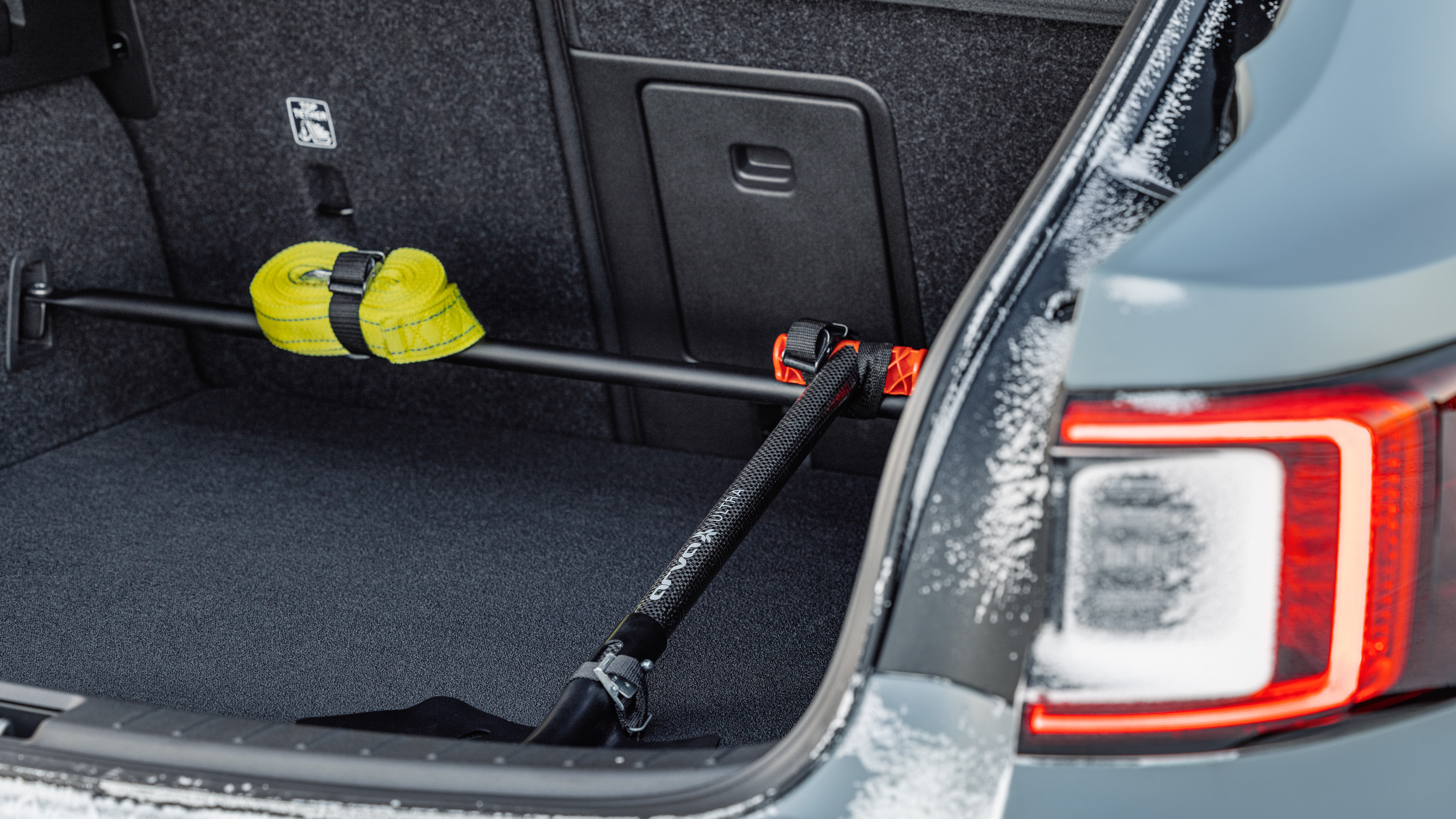 Así como el pequeño está pensado para transportar cables de carga, bolsos u otros objetos de tamaño reducido, el grande tiene el propósito de almacenar equipaje u objetos más voluminosos. Este último resulta diáfano, está bien iluminado, dispone de un doble fondo bien aprovechado y también de interesantes soluciones de separación y sujeción. La boca de carga es ancha y se encuentra a una altura cómoda (no hay que esforzarse mucho para colocar maletas, por ejemplo). Su portón tiene apertura y cierre eléctrico. Este se puede accionar moviendo el pie debajo del parachoques trasero.