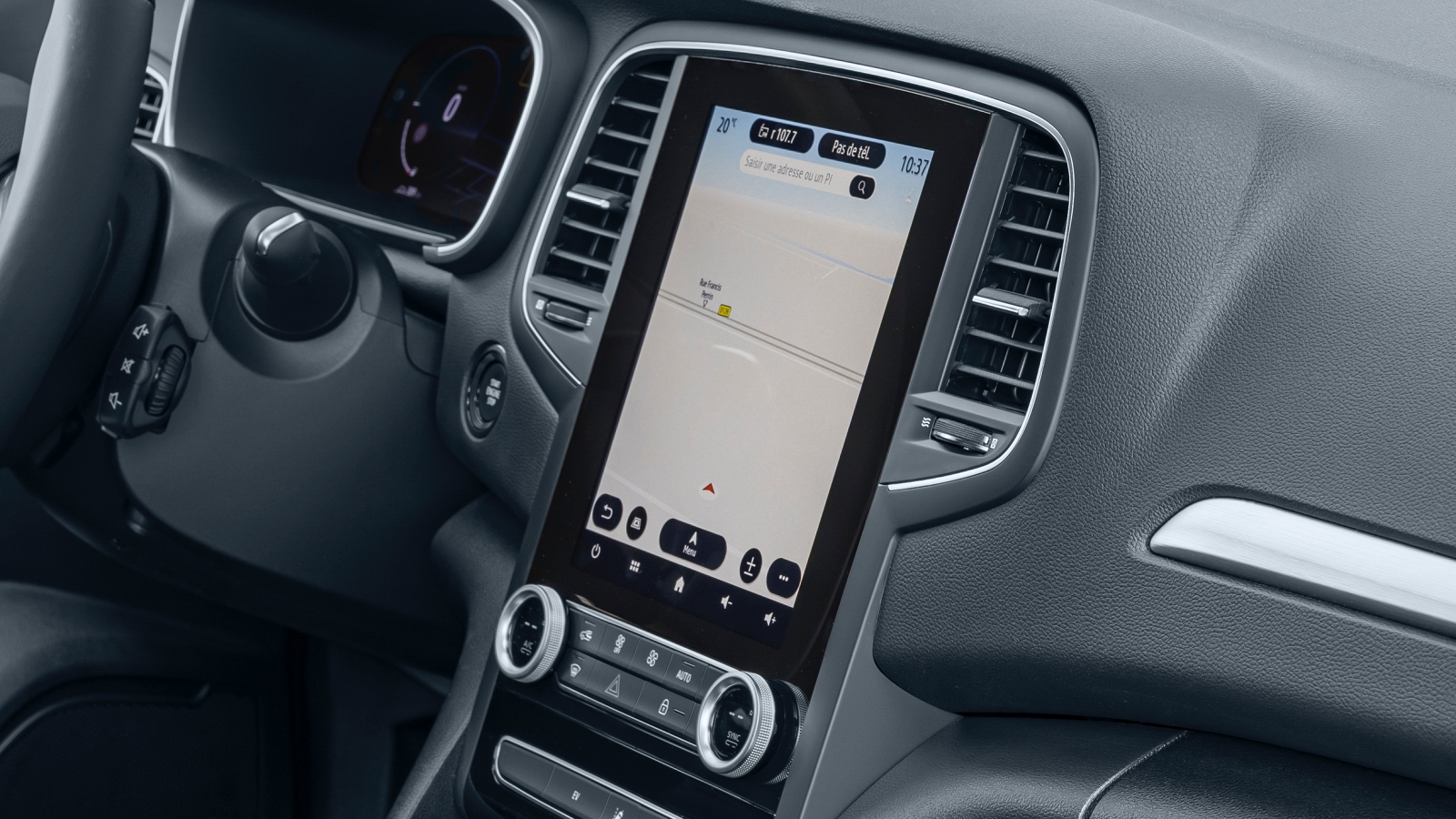 A pesar de que los años pasan muy bien en cuestión de diseño, el Mégane sufre una excesiva antigüedad si tenemos en cuenta los modelos más modernos de la categoría. Donde más sufre es en el apartado de la tecnología, aunque la actualización de 2020 incluye sistemas de última generación. La presentación del interior también es buena, tanto en materiales como en disposición, destacando por encima de todo la posición vertical de la pantalla principal del sistema multimedia, formato habitual en todos los modelos de la casa.