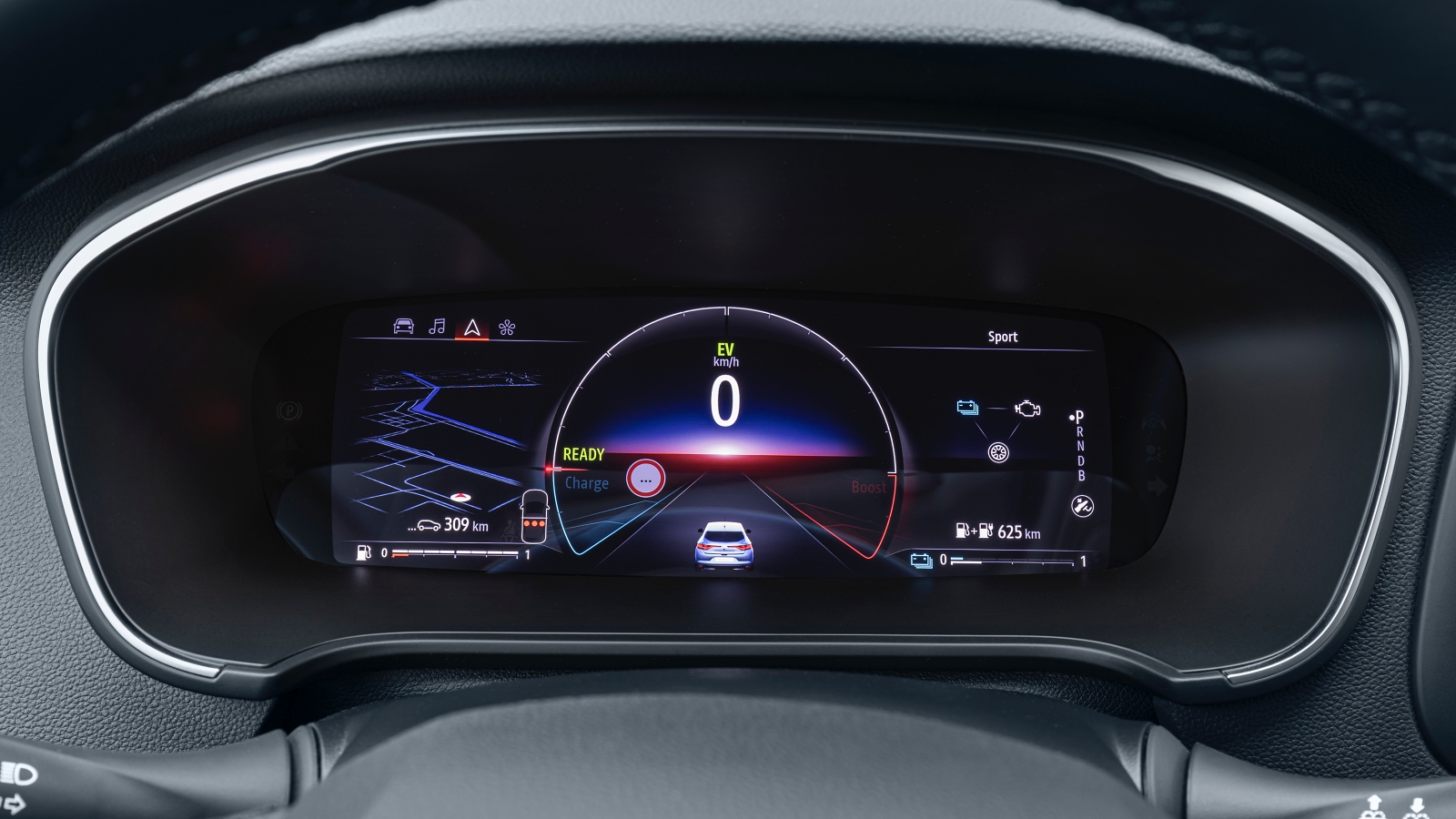 Hay que reconocer que los diseñadores de Renault hicieron un muy buen trabajo cuando crearon el habitáculo del Mégane. A pesar de contar con unos cuantos años encima ha sabido soportar muy bien el paso del tiempo e incluso a hoy mantiene los estándares modernos. La actualización de 2020 introduce un cuadro de instrumentos digital y una mejora en la pantalla principal del sistema multimedia. Con 9,3 pulgadas de tamaño y formato vertical, muchas funcionalidades se gestionan a través de ella, incluyendo apartados, gráficos y menús específicos para la variante híbrida enchufable. La climatización se mantiene un módulo separado, lo que supone una gran ayuda.