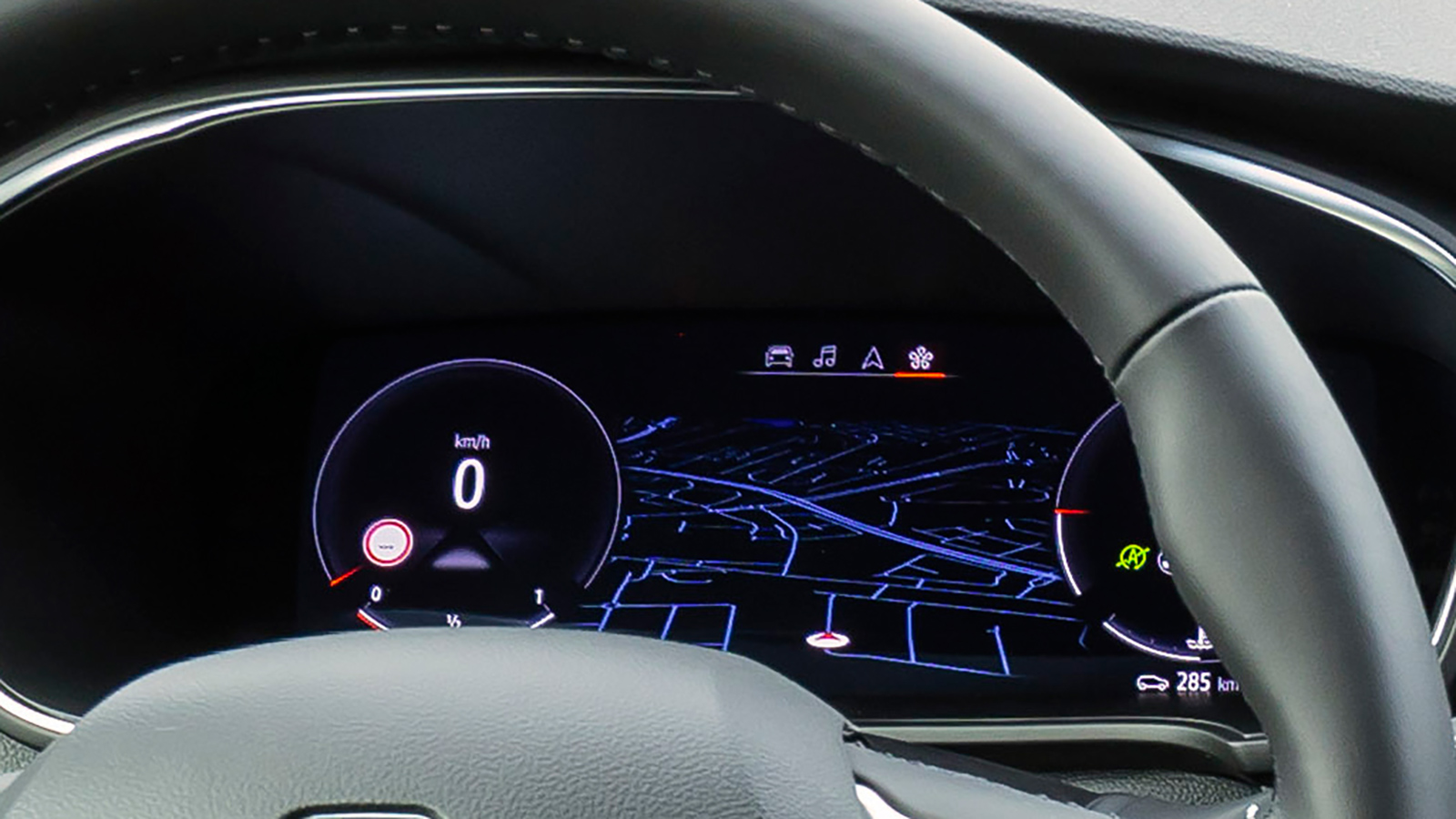 El Renault Mégane siempre se ha caracterizado por estar más orientado hacia la conducción confortable que a la deportiva (es todo lo contrario en las versiones RS más radicales). Esto es algo que se nota nada más sentarse en el puesto de conducción. El asiento es grande y confortable, una butaca que te arropa y que te invita a conducir. Según el nivel de equipamiento pueden llevar función de calefacción y masaje. Asimismo, como no podría ser de otra manera en un vehículo de esta categoría, las regulaciones disponibles son diversas y amplias, no solo para el asiento, sino también para el volante.