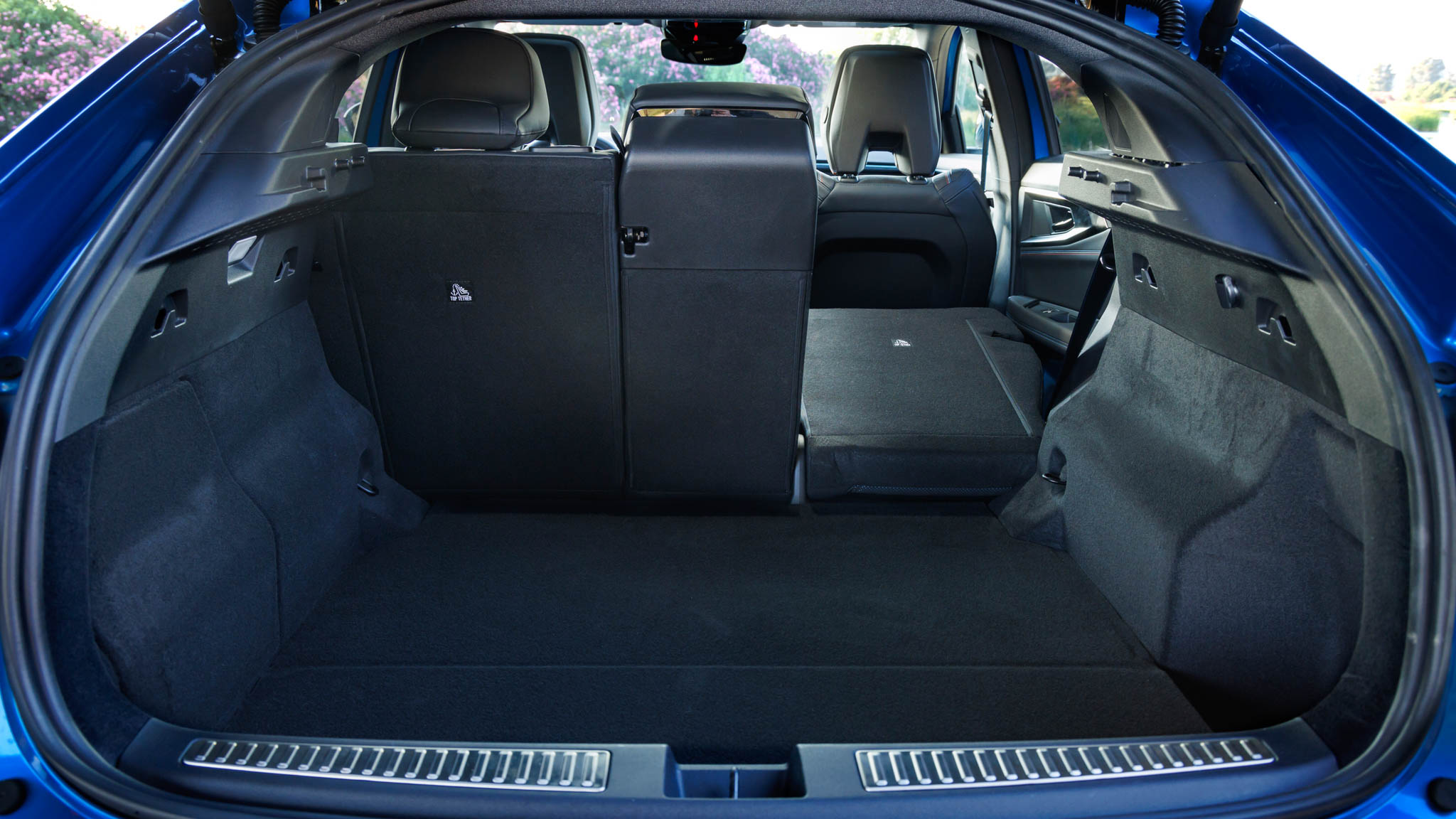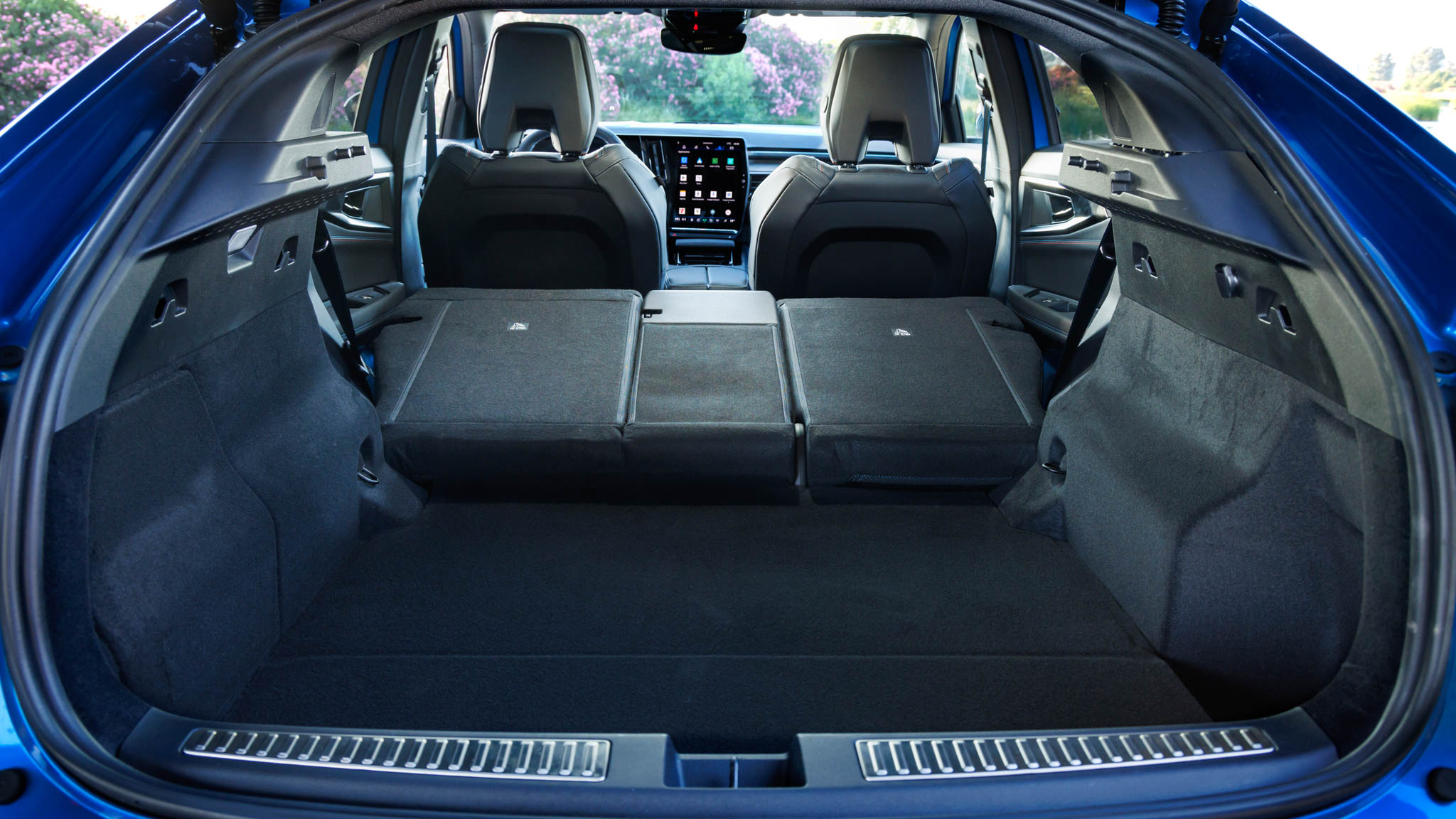 Los respaldos de los asientos traseros se pueden abatir en tres secciones (una para cada plaza), lo cual resulta muy práctico. De esta manera, el espacio de carga disponible asciende a 1600 litros. Con el acabado techno, el portón tiene apertura manual de serie (eléctrico opcional), mientras que con el esprit Alpine el eléctrico viene incluido.