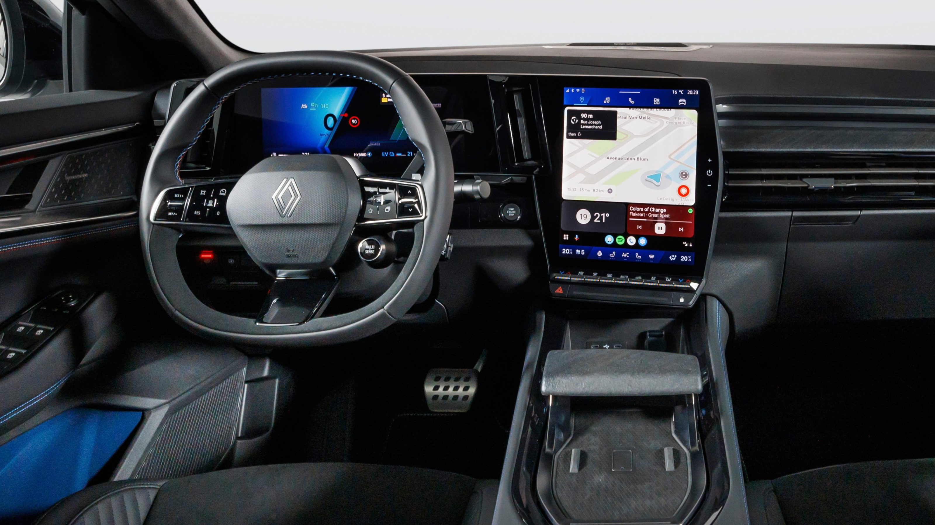 La del infoentretenimiento va colocada en vertical, tiene 12 pulgadas y aúna gran parte de las funciones del vehículo, aunque Renault ha dejado una serie de botones físicos en la parte inferior para acceder rápido a las funciones más frecuentes. La pantalla de la instrumentación es aún más grande, con 12,3 pulgadas, y cuatro modos de visualización diferentes (Renault los denomina ‘temas’).