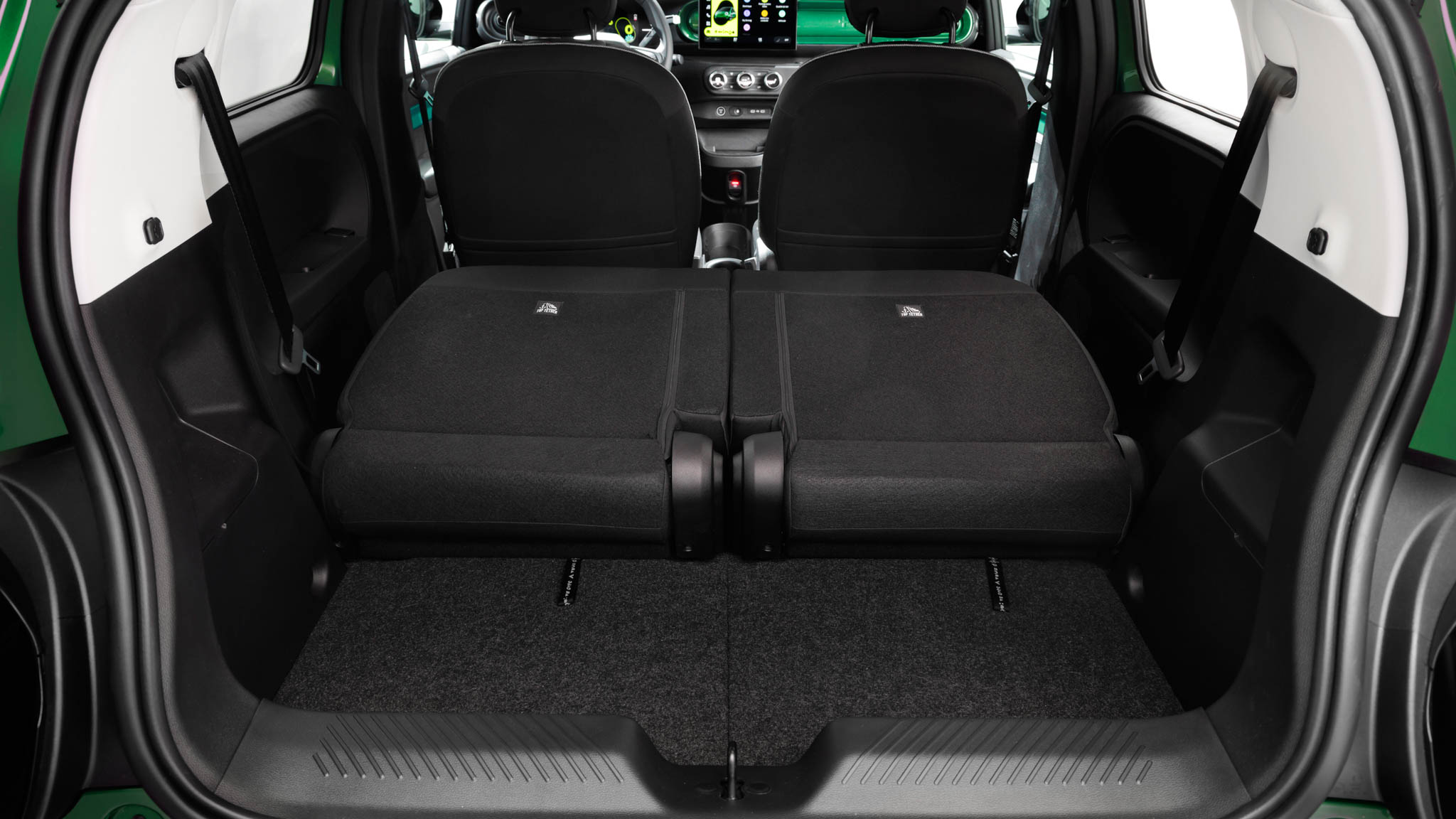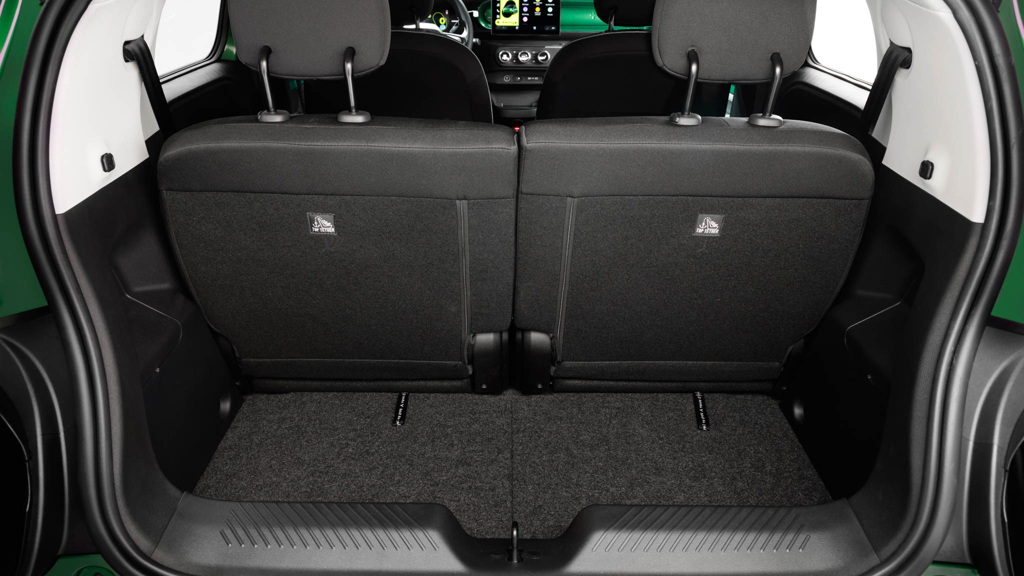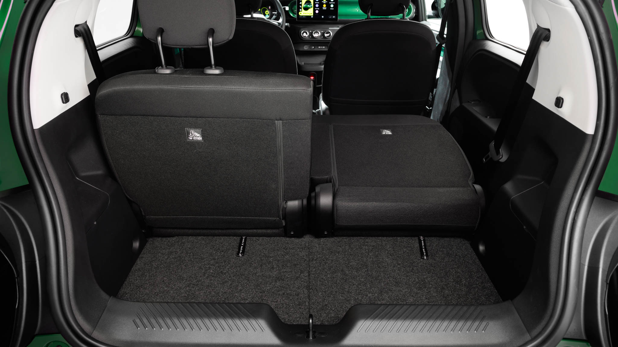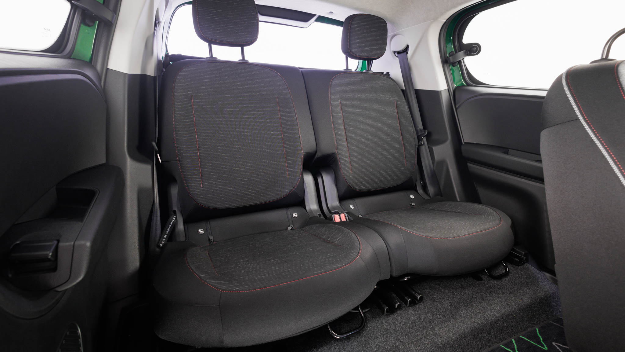 Detrás está una de las claves del coche: los asientos traseros son independientes, deslizantes y abatibles, con un recorrido amplio que permite jugar constantemente entre espacio para las piernas o espacio de carga. En la posición más retrasada, el hueco para las rodillas es sorprendentemente generoso para un urbano; en la más adelantada, el coche se convierte en una pequeña furgoneta improvisada. El suelo es completamente plano y la anchura es suficiente para que dos adultos viajen sin sensación de agobio.