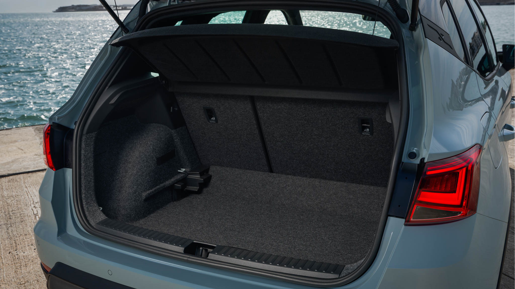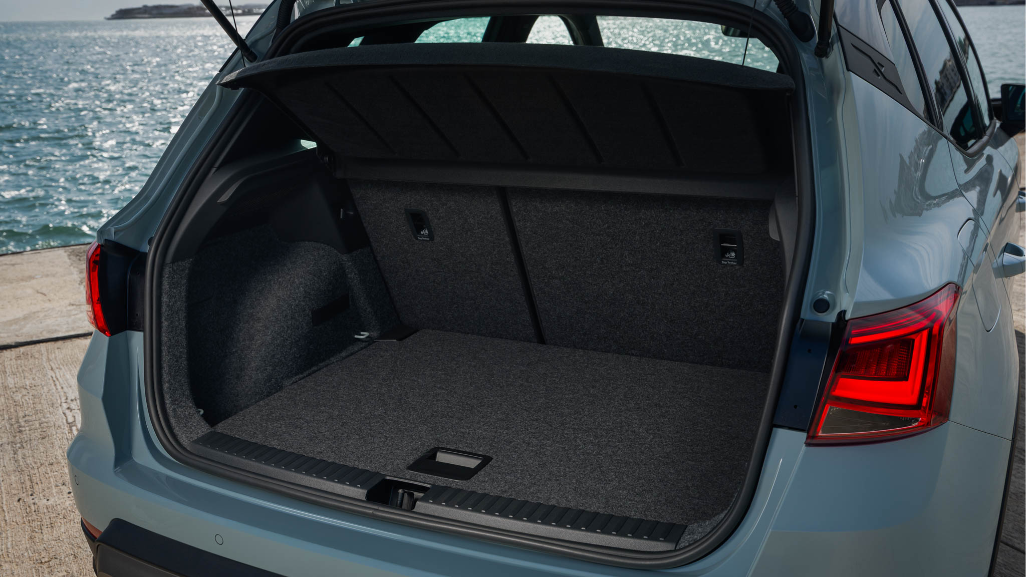 El maletero del SEAT Arona ofrece una capacidad de 400 litros, una cifra muy competitiva dentro del segmento de los SUV urbanos. Es más grande que el de un Nissan Juke y se sitúa en la media-alta frente a rivales como el Ford Puma o el Volkswagen T-Cross. Además, su forma regular, el doble fondo y los ganchos de sujeción facilitan aprovechar bien el espacio en el día a día o en viajes.