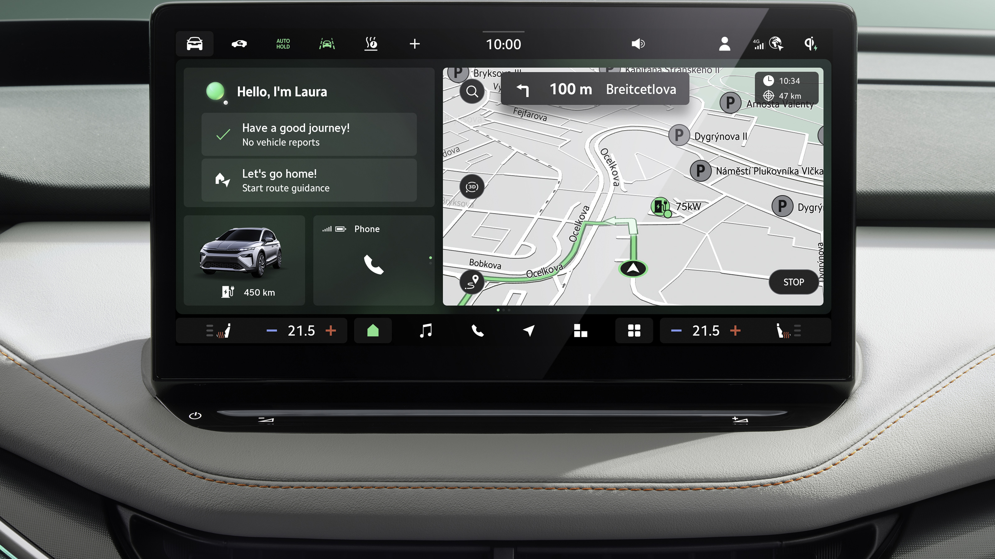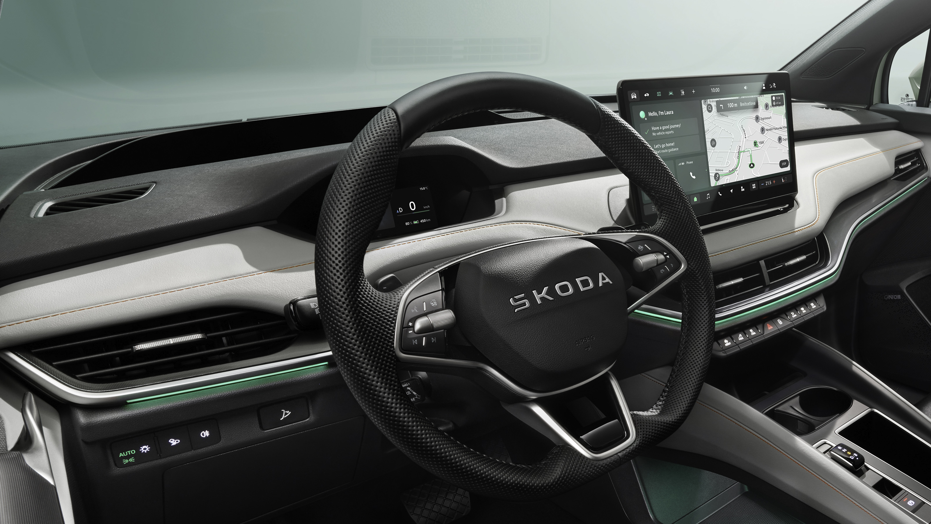 El Elroq tiene una pantalla multimedia de 13 pulgadas con una interfaz mejorada para un uso más intuitivo. La interfaz permite configurar accesos directos para funciones del coche y otras aplicaciones. También incluye un sistema de navegación que Skoda dice que ha mejorado. El inicio de sesión se realiza automáticamente, eliminando la necesidad de autenticación manual.