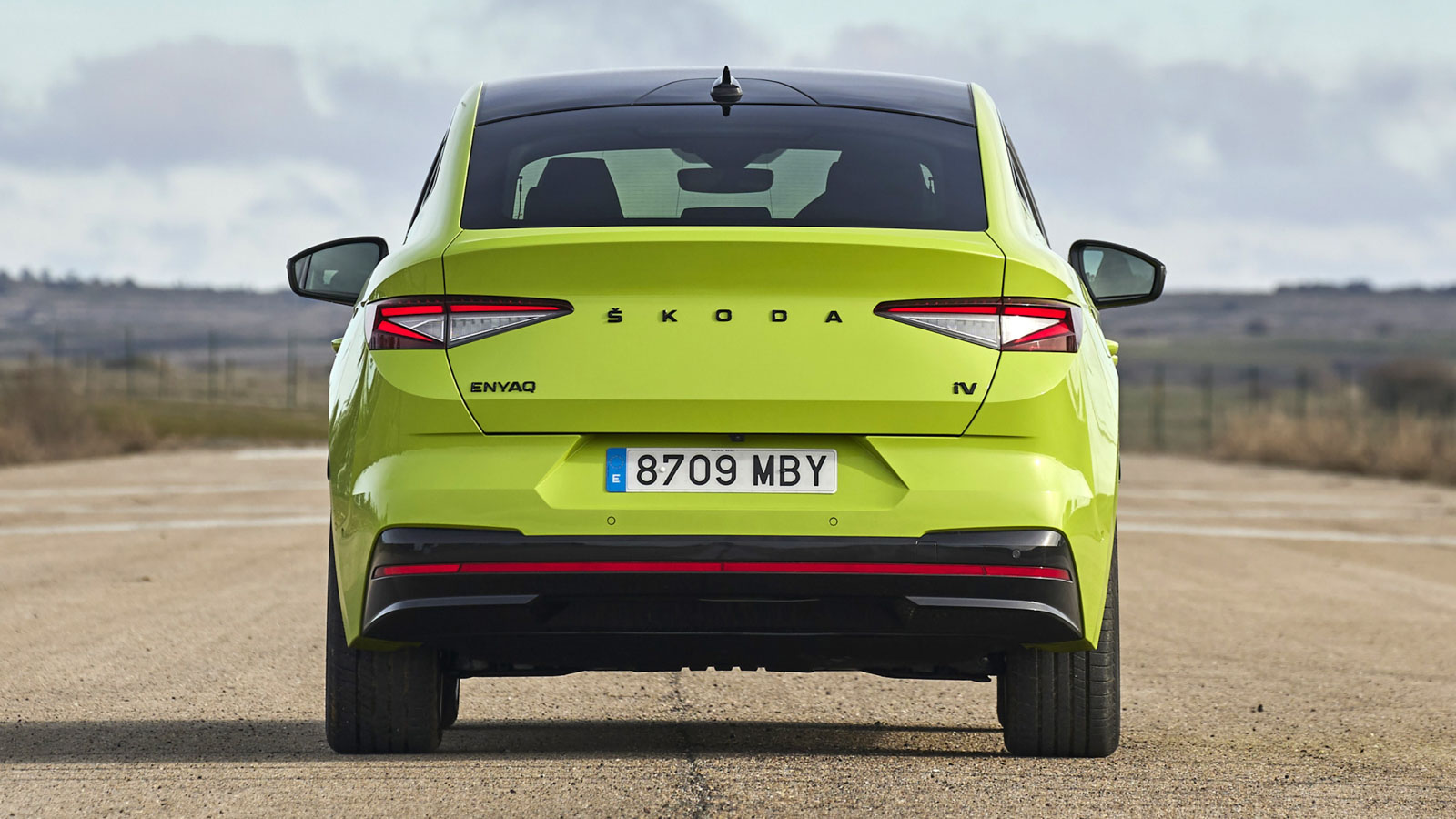 Esta es la variante de carrocería deportiva del SUV eléctrico Enyaq iV, que se caracteriza por la caída del techo en la parte trasera. El maletero apenas pierde capacidad.