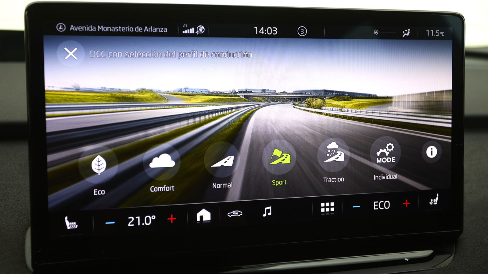Hay un único tamaño de pantalla táctil multimedia disponible, 13 pulgadas, que se complementa con una pantalla para la instrumentación de 5,3 pulgadas (Digital Cockpit). Android Auto y Apple CarPlay van incluidos. Sobre la instrumentación, opcionalmente, puedes tener un sistema que proyecta en el parabrisas información importante durante la conducción.